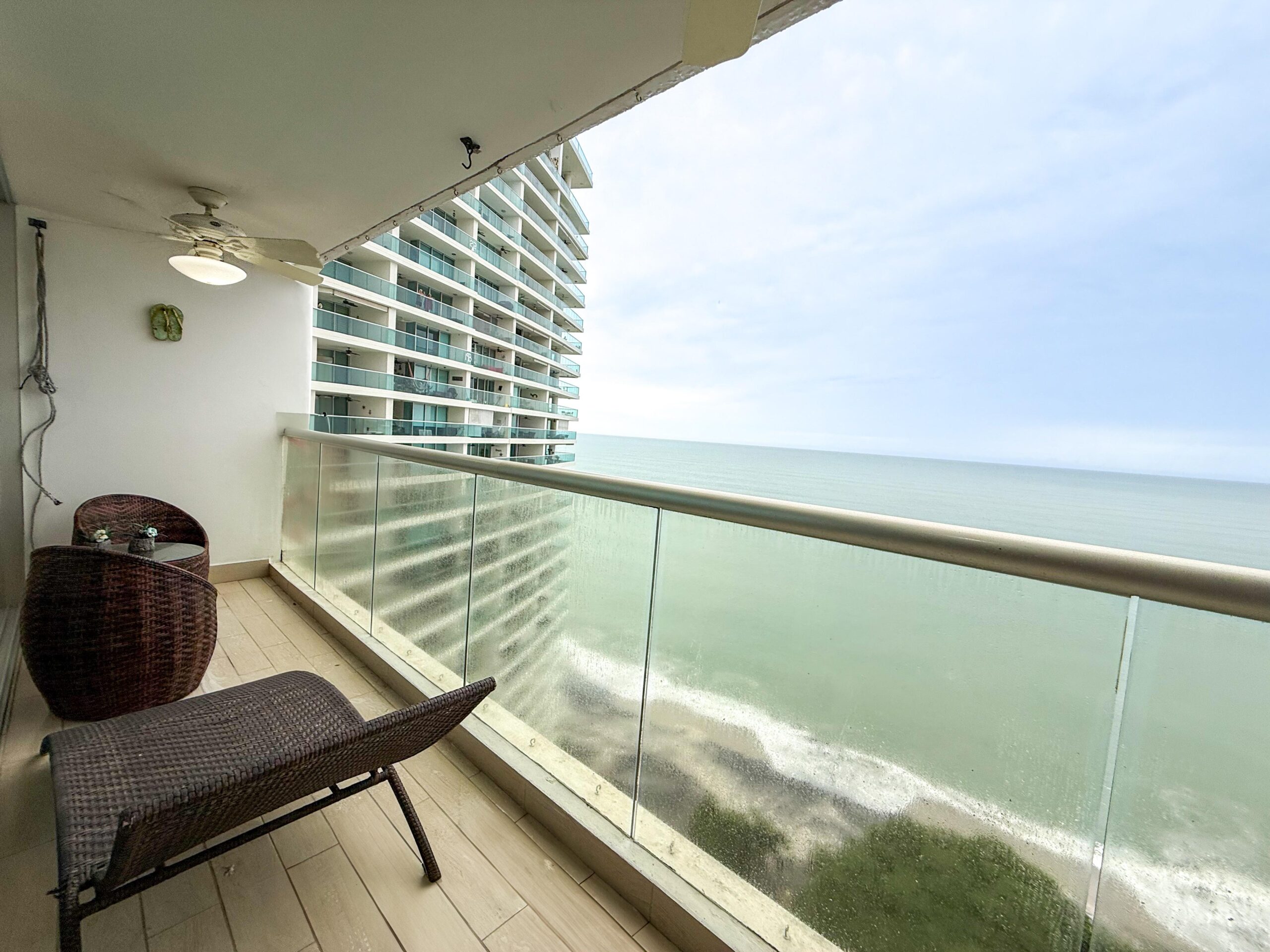Wake up to sweeping ocean views right from your bedroom in this beautifully furnished 1-bedroom, 1-bath beachfront condo located in one of Nueva Gorgona’s most vibrant and high-quality buildings. With 72 m² (775 ft²) of open-plan living space and a spacious balcony, this condo offers the perfect blend of coastal tranquility and everyday comfort.