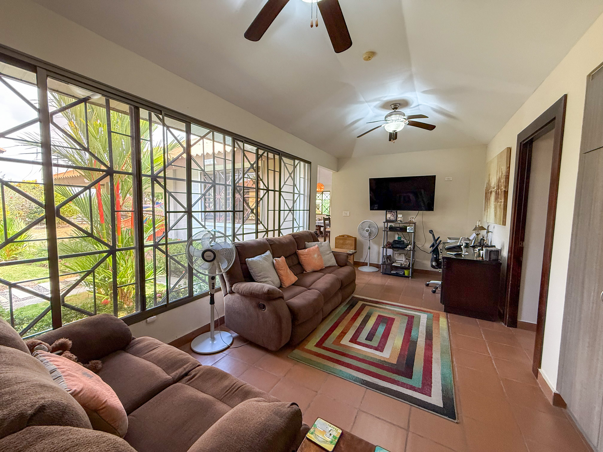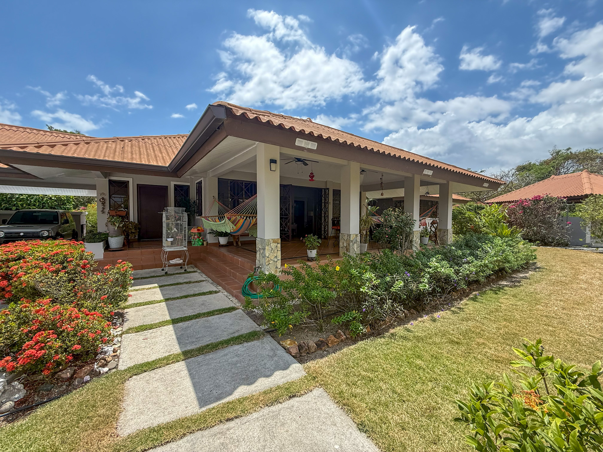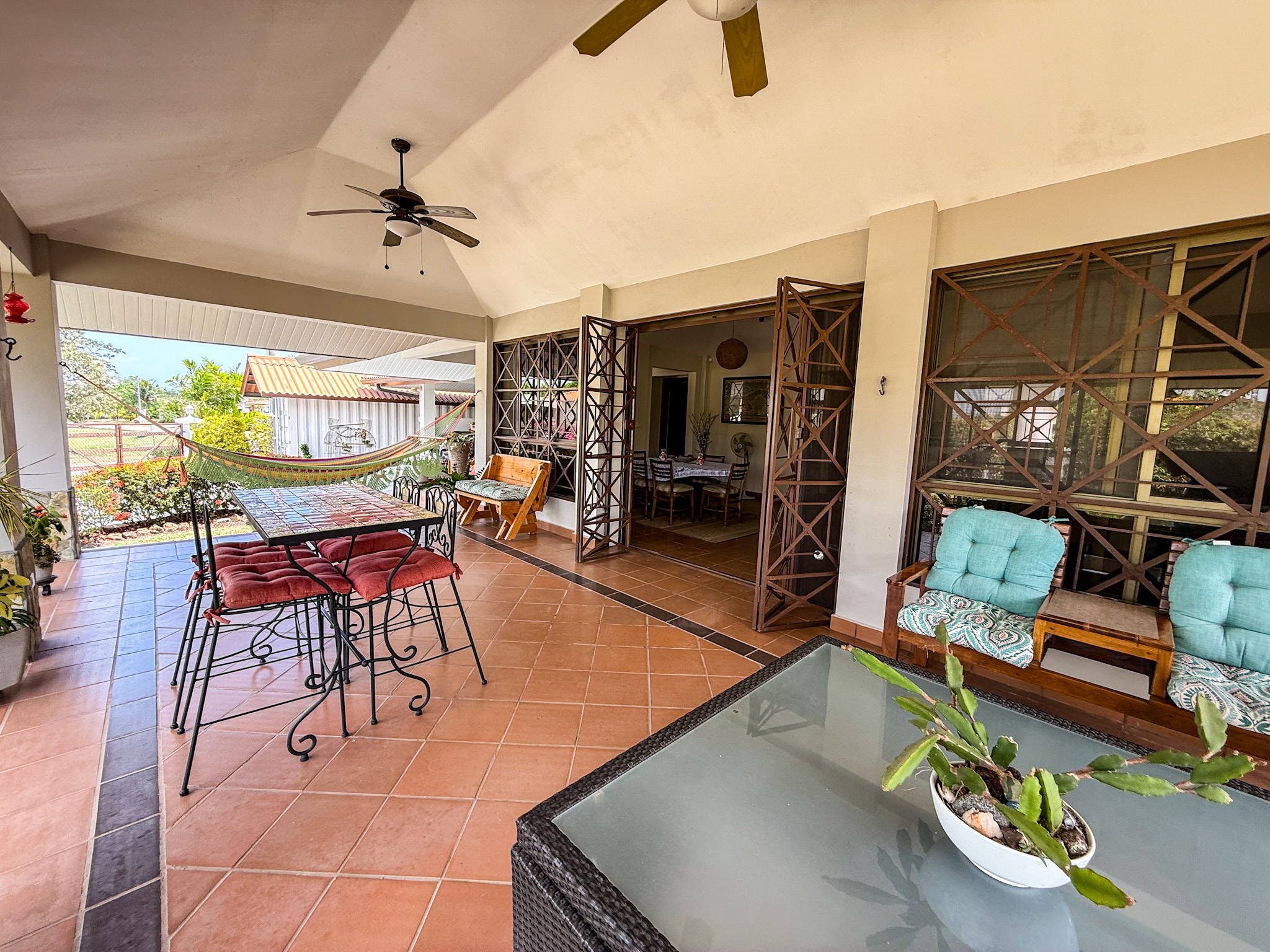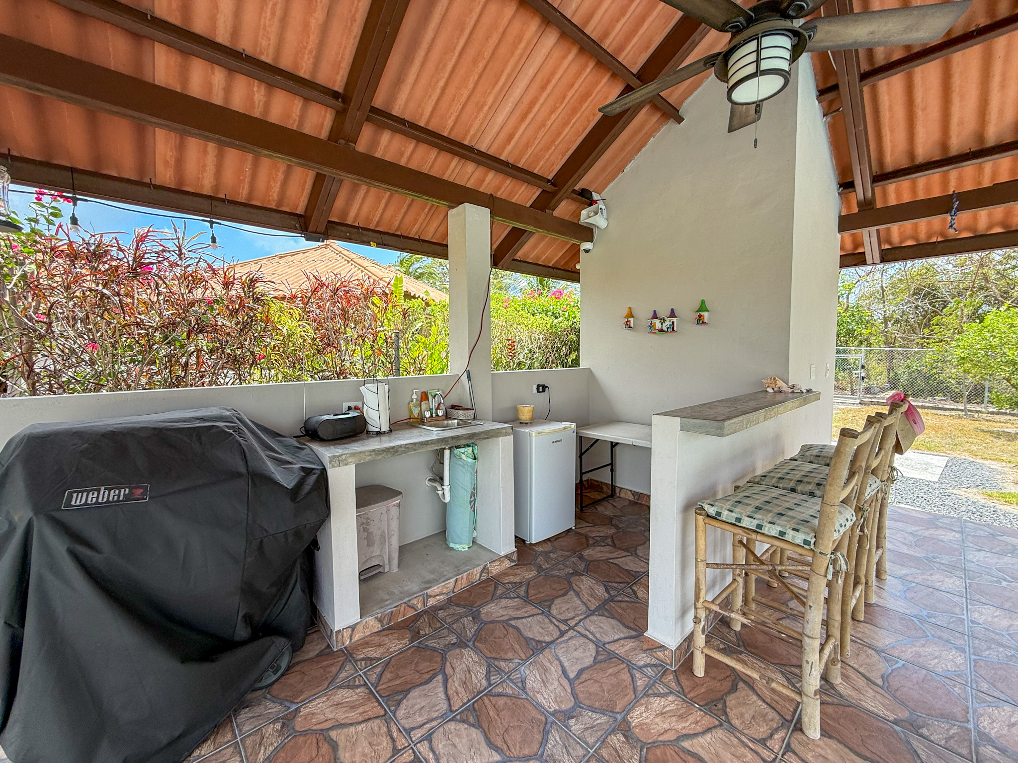 The home sits on a beautifully landscaped and fully fenced 0.29 acre (1,165.19 sqm) lot with mature fruit bearing trees including soursop, lemon, starfruit, and mango, all actively producing and providing natural shade and privacy. In addition, there are multiple flowering plants and ornamental greenery throughout the property. Photos of the current fruits, flowers, and landscaping are included in the listing.