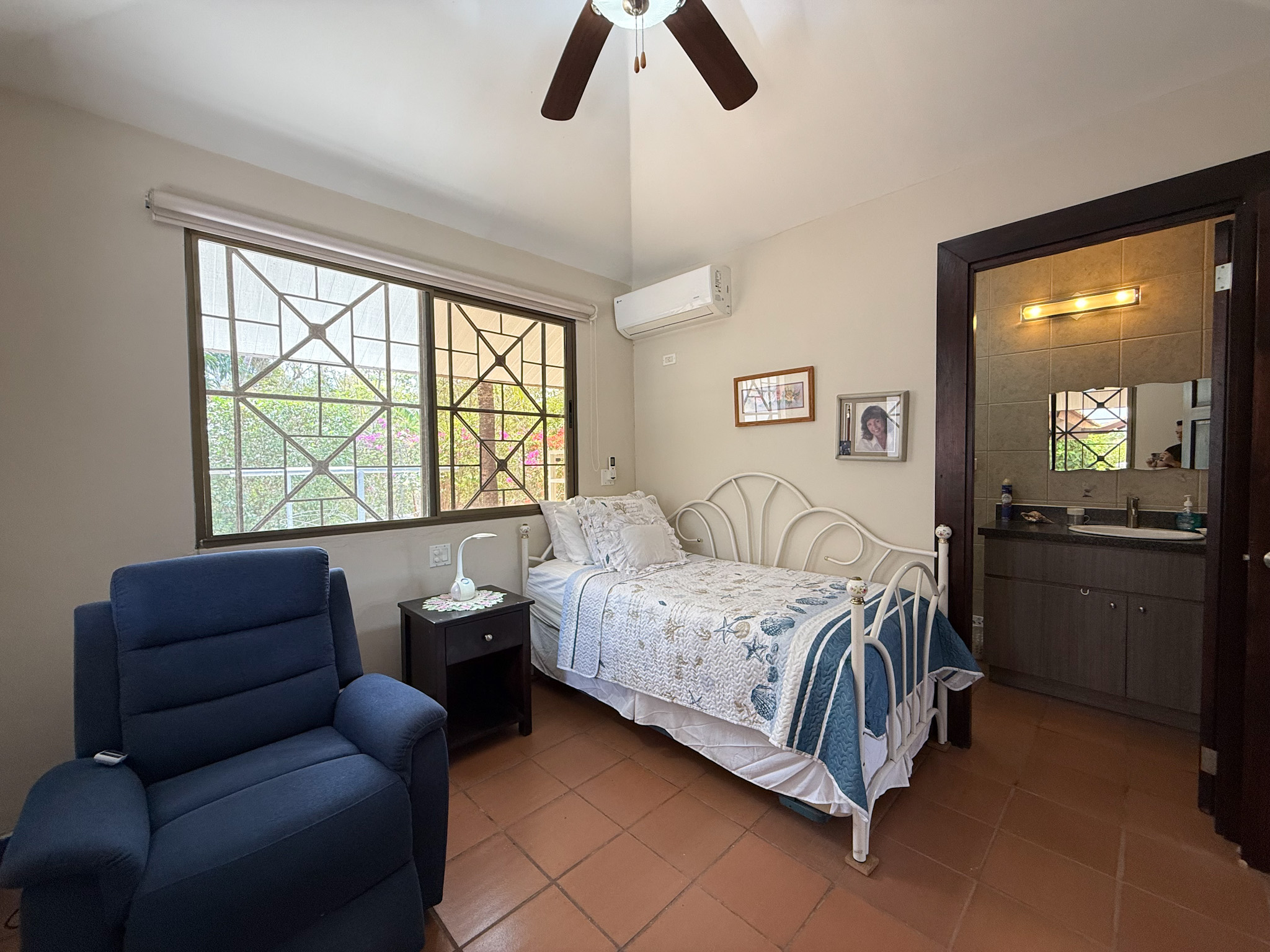 This beautifully maintained single story residence offers 3 bedrooms and 3 bathrooms, with each bedroom featuring its own ensuite bathroom for maximum privacy and comfort. The secondary bedrooms are generously sized and can comfortably accommodate queen or king size beds, and all bedrooms include ample closet space. In addition, there is a convenient half bathroom located near the living area for guests.