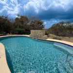 The pool measures approximately 36 ft x 16.4 ft (11 m x 5 m), with depths ranging from 3.8 ft to 5.4 ft (1.15 m to 1.65 m), ideal for entertaining or relaxing in a private tropical setting.