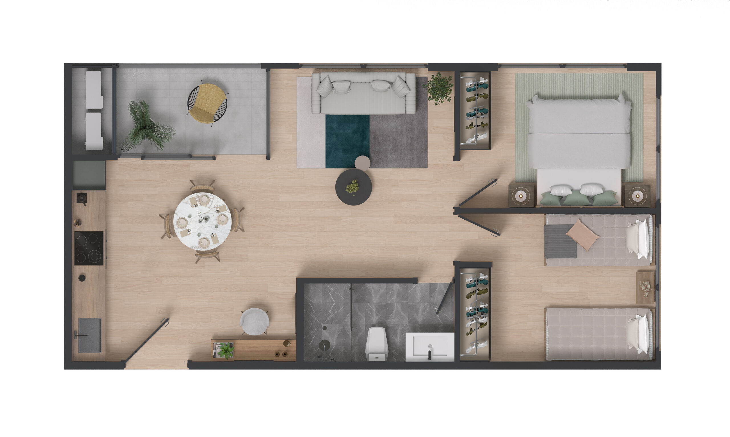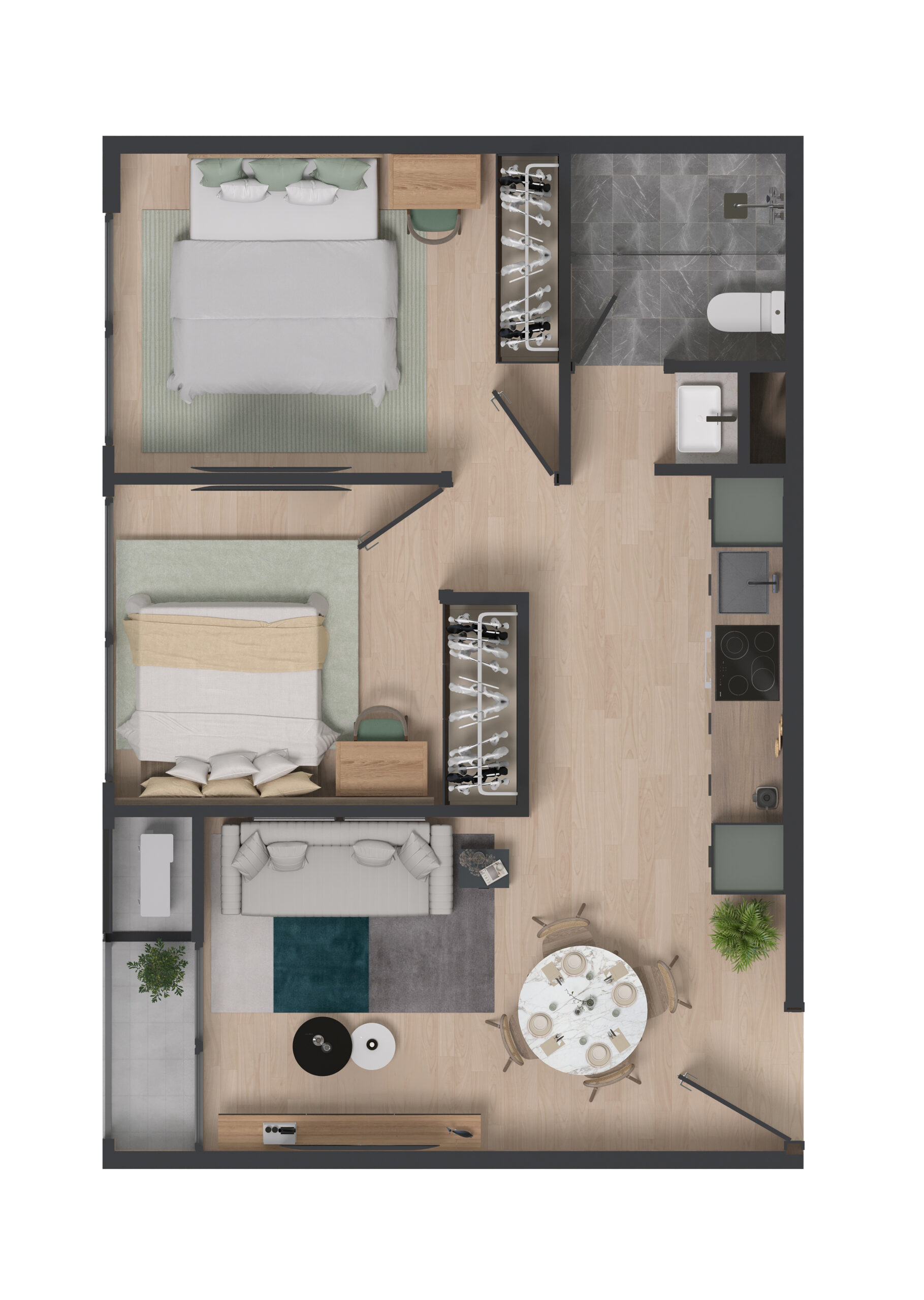 2 Bedroom | 1 Bathroom | 565 sq. ft. (52.5 sqm)