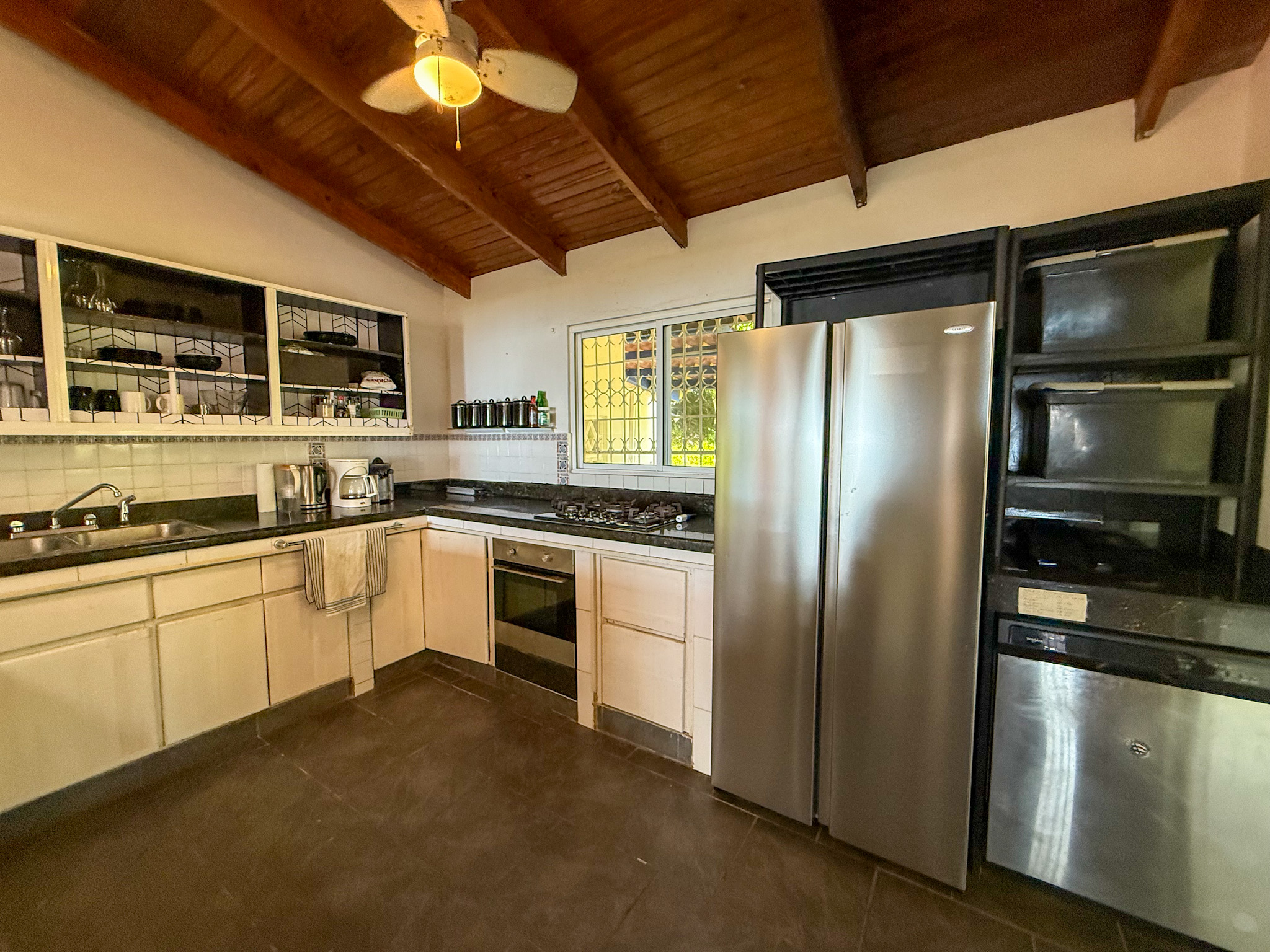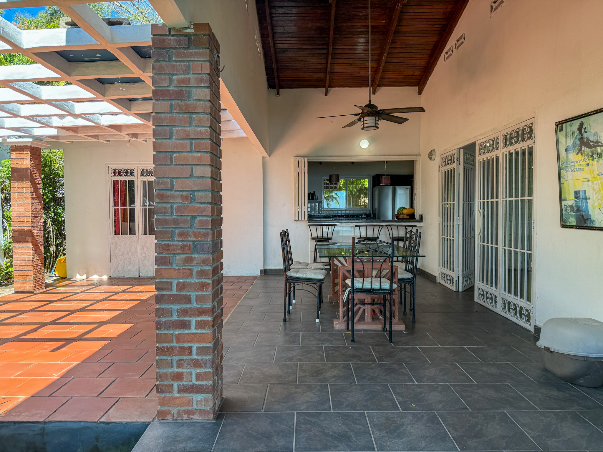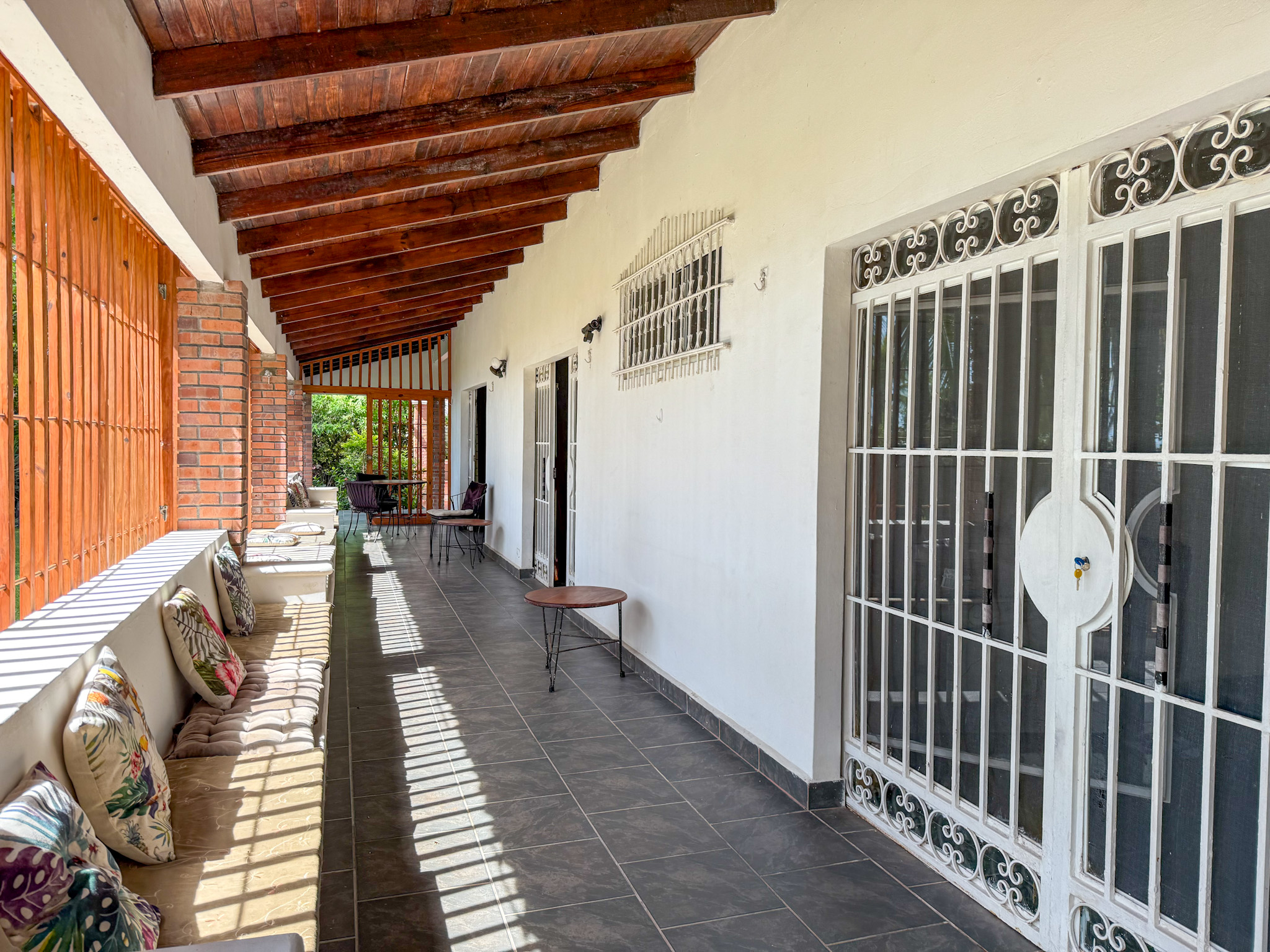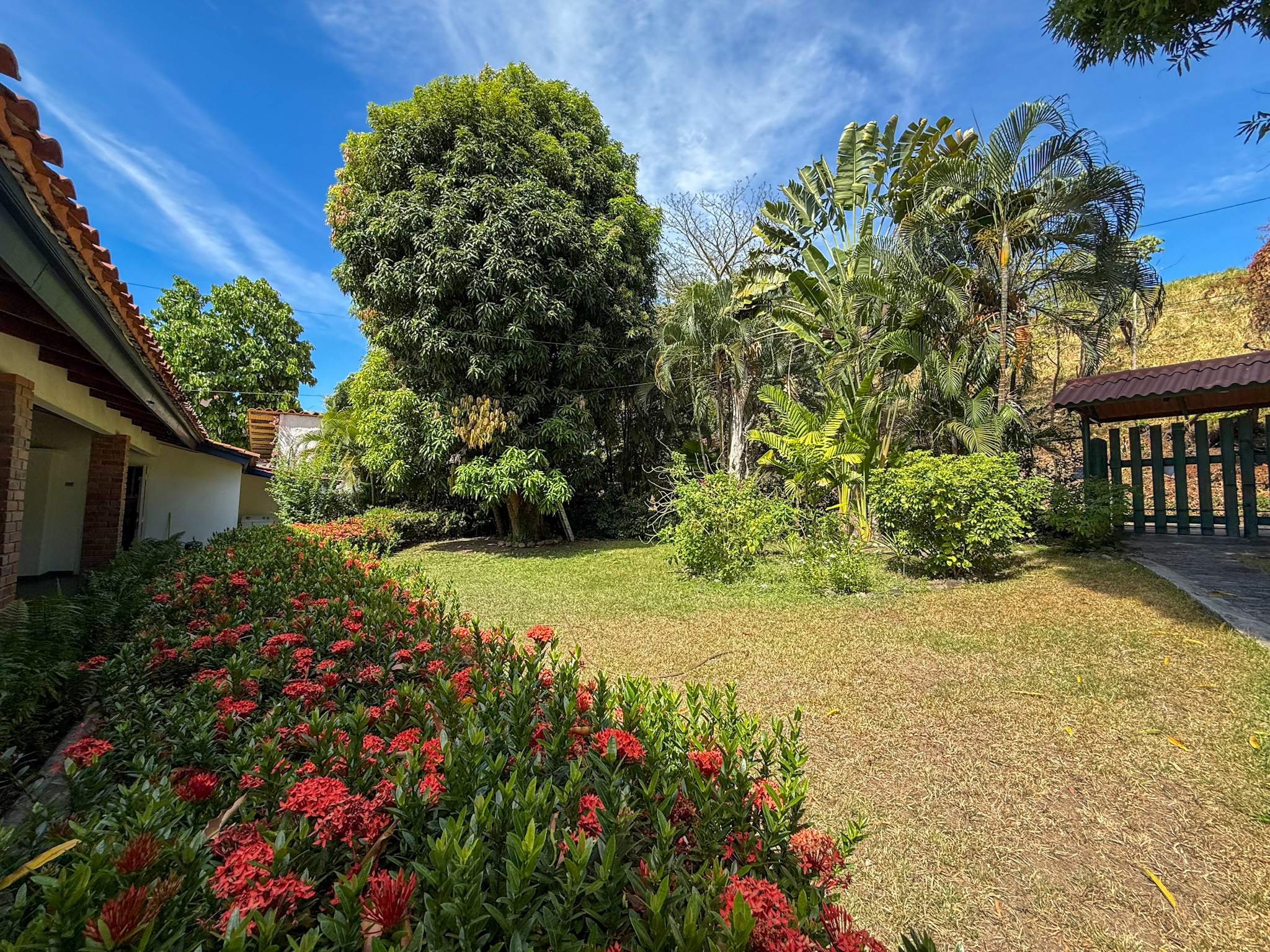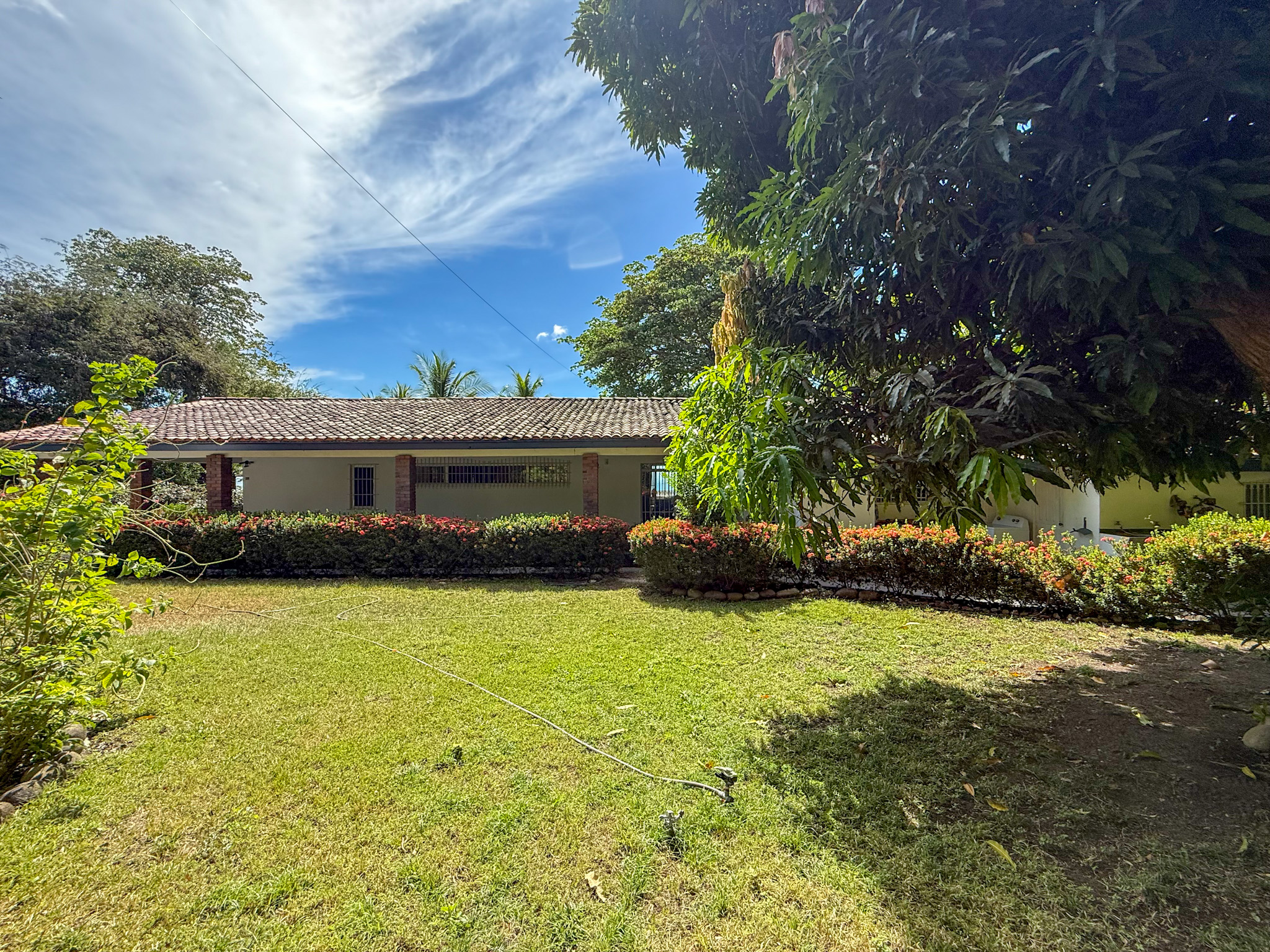Set on 1,500 m² (0.37 acres) of lush, mature grounds, the landscaping is something that simply cannot be replicated overnight. Towering shade trees, coconut palms heavy with fruit, and a beautiful mango tree create a natural tropical canopy that keeps the outdoor spaces cool and comfortable throughout the day. This is beachfront living without harsh exposure — a rare balance of sun, shade, and ocean breeze. A natural gazebo with a covered sitting area provides the perfect setting for morning coffee, afternoon relaxation, or unforgettable sunset gatherings.