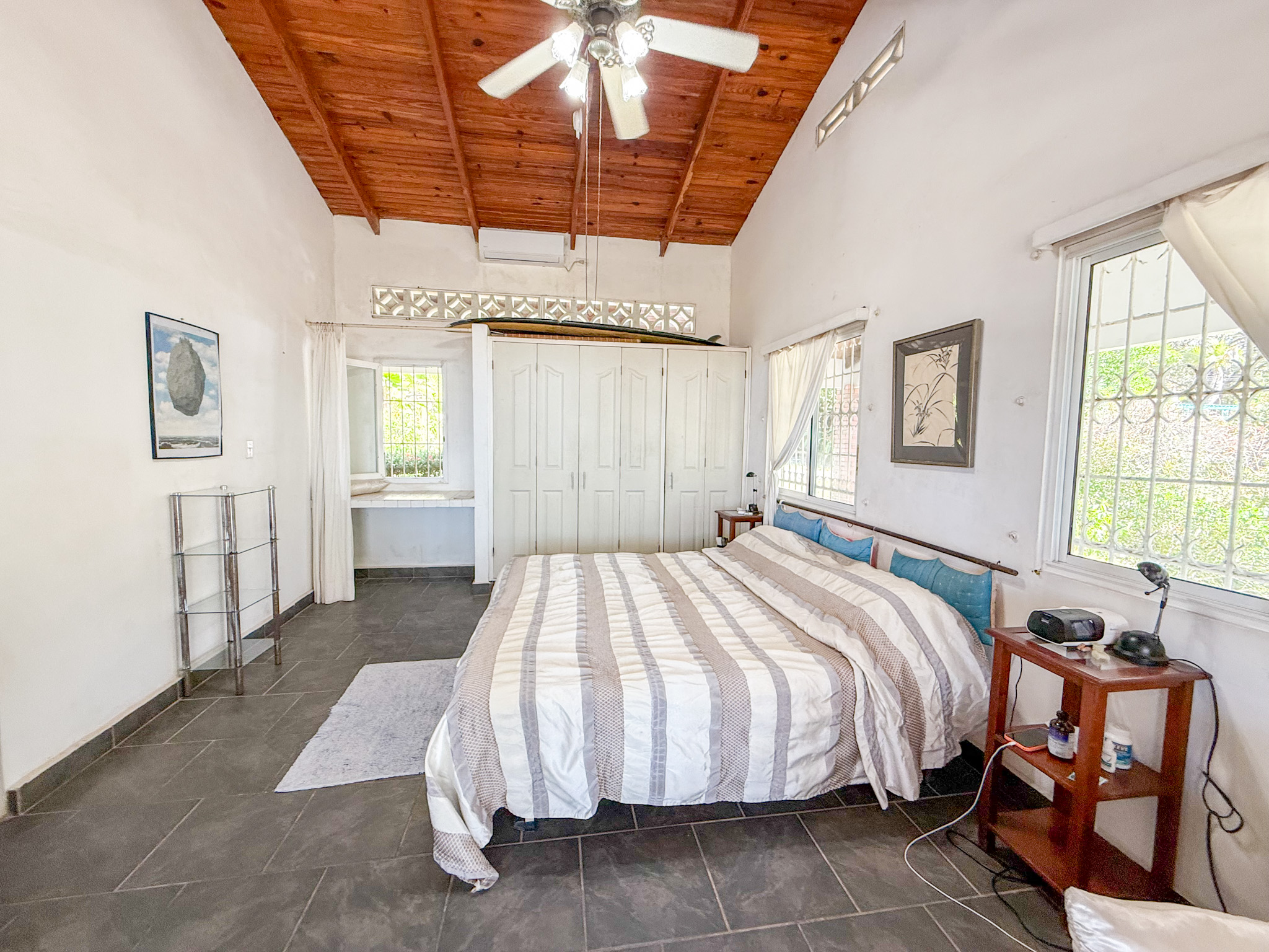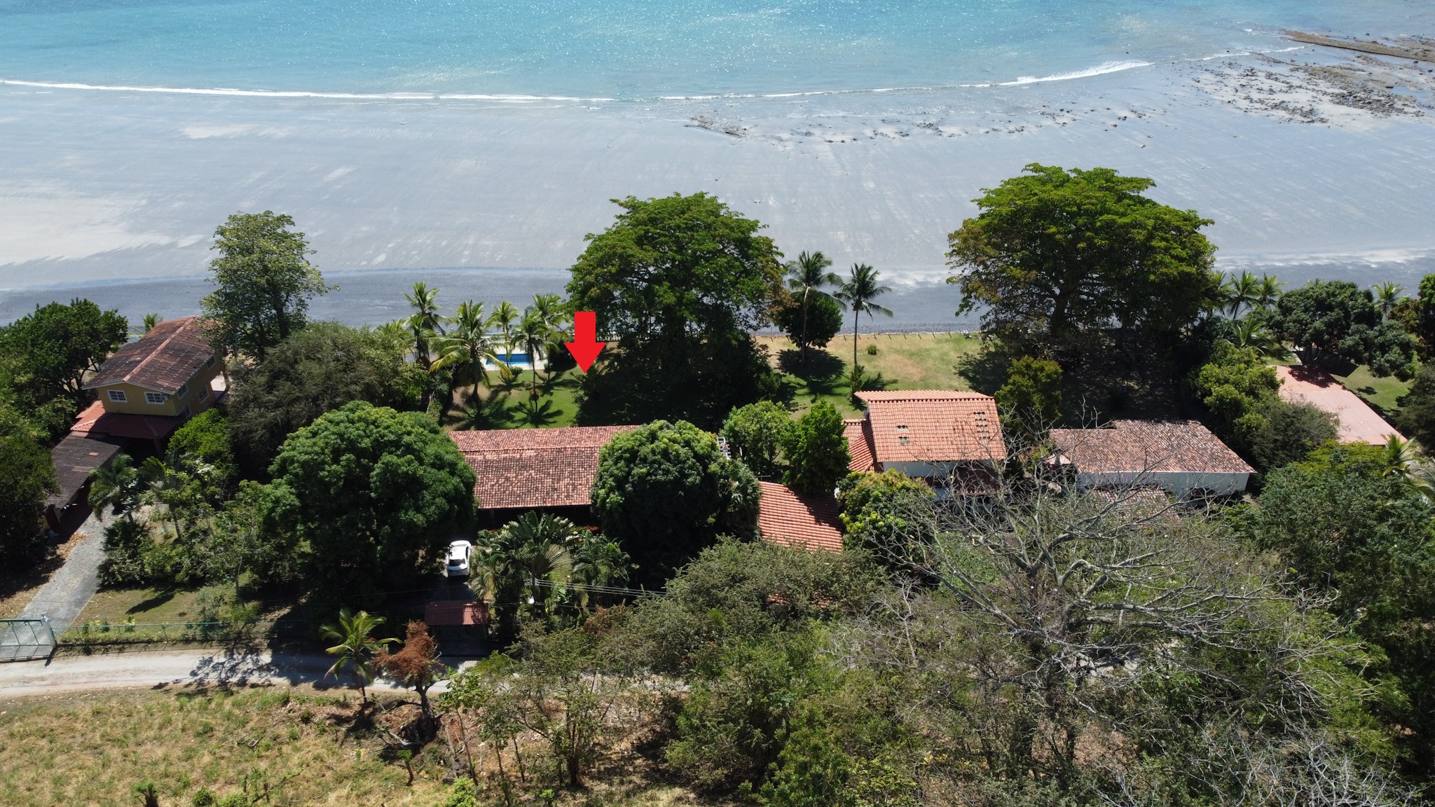 This 3-bedroom, 3-bathroom single-story beachfront home sits on a beautifully shaped section of coast where the natural curve of the shoreline keeps the waters calm and inviting. Swimming here is easy, enjoyable, and part of everyday life. Tucked away on a private road, the property offers exceptional privacy with no busy traffic, just the rhythm of the ocean and the breeze through the trees.