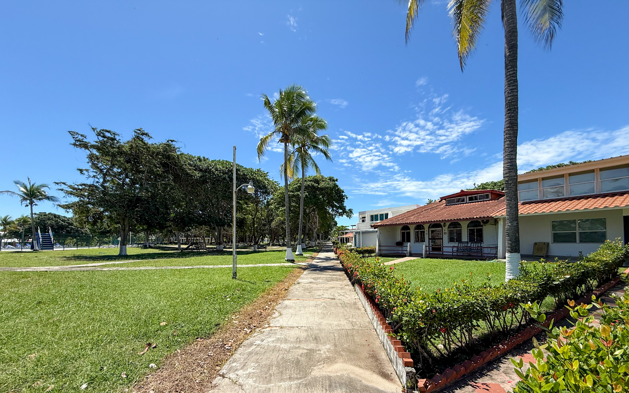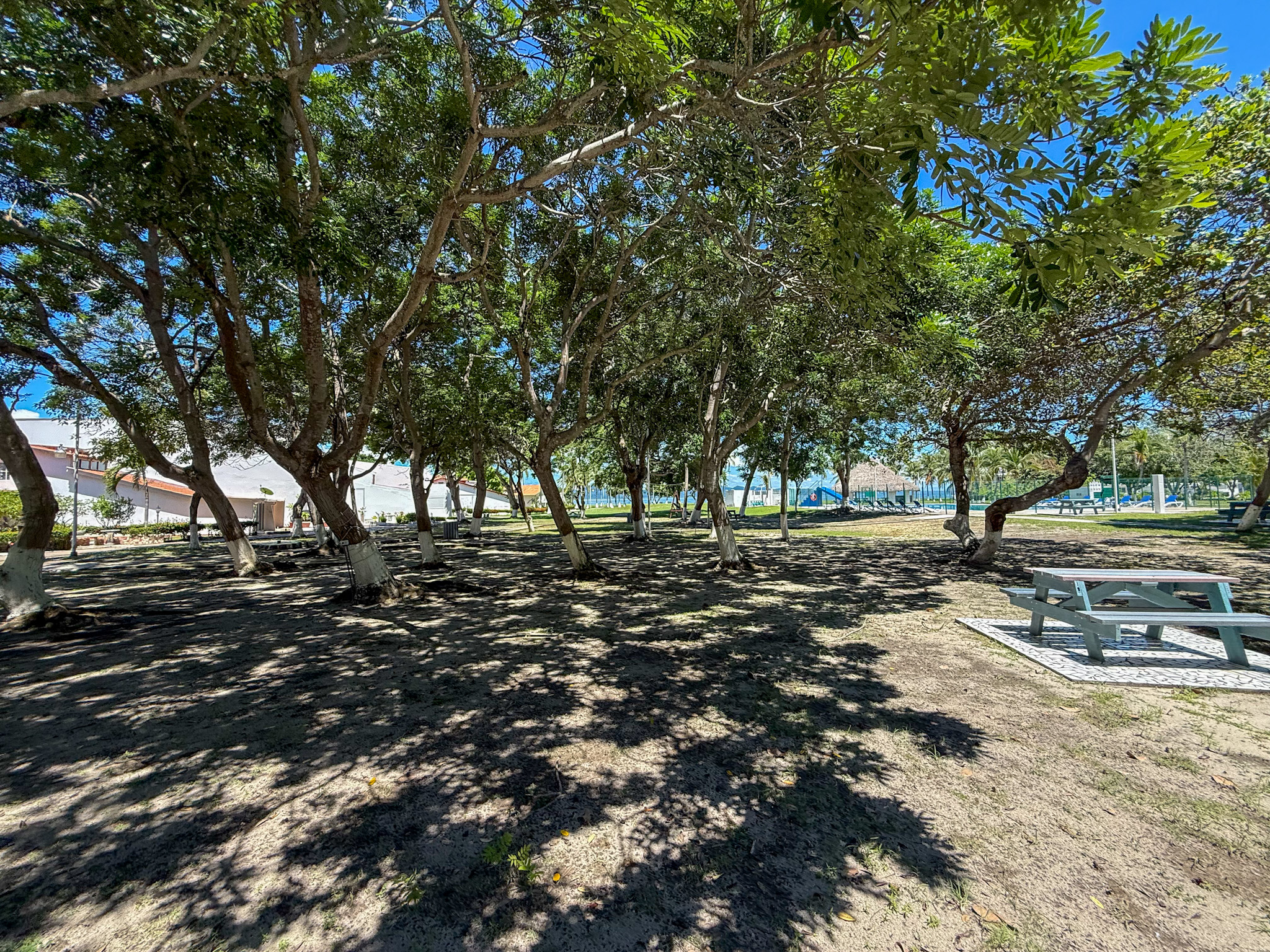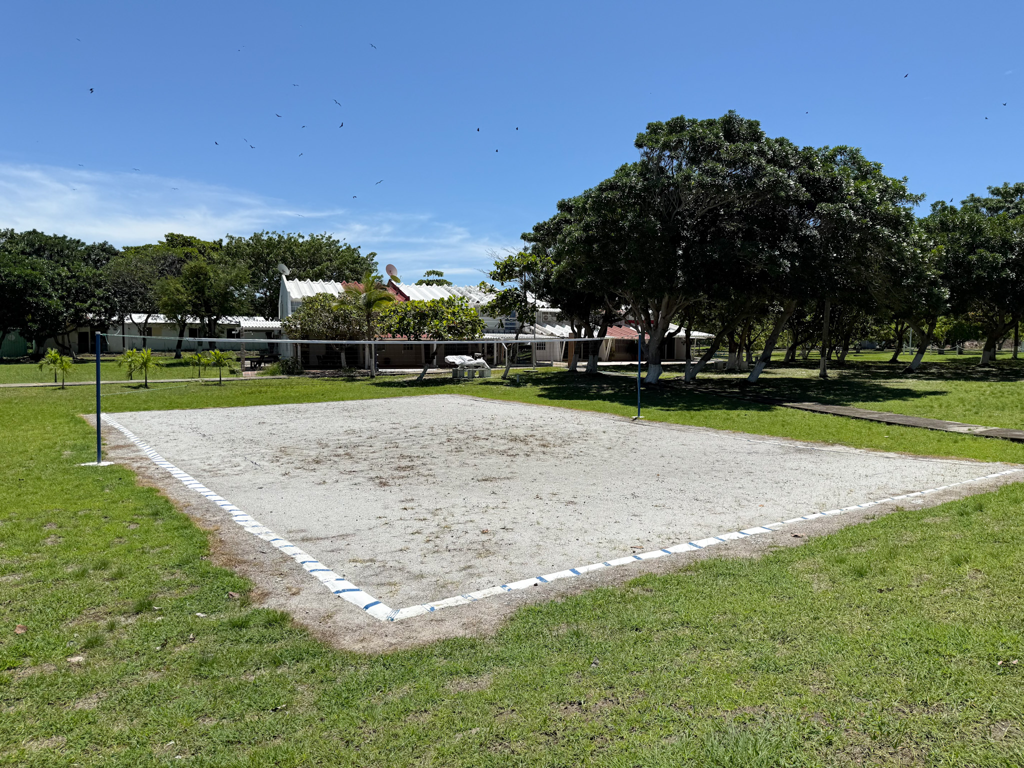 Social area with volleyball court