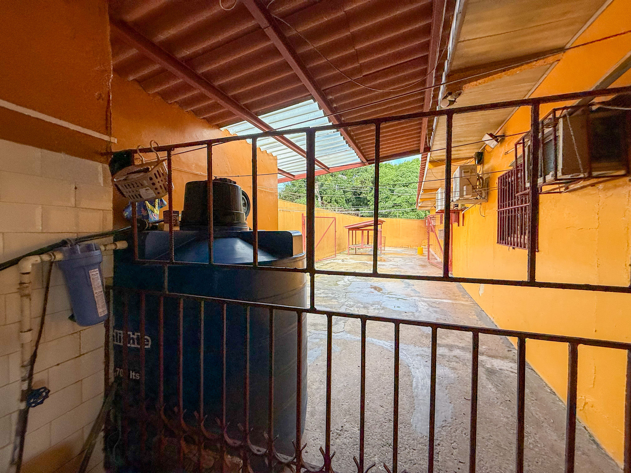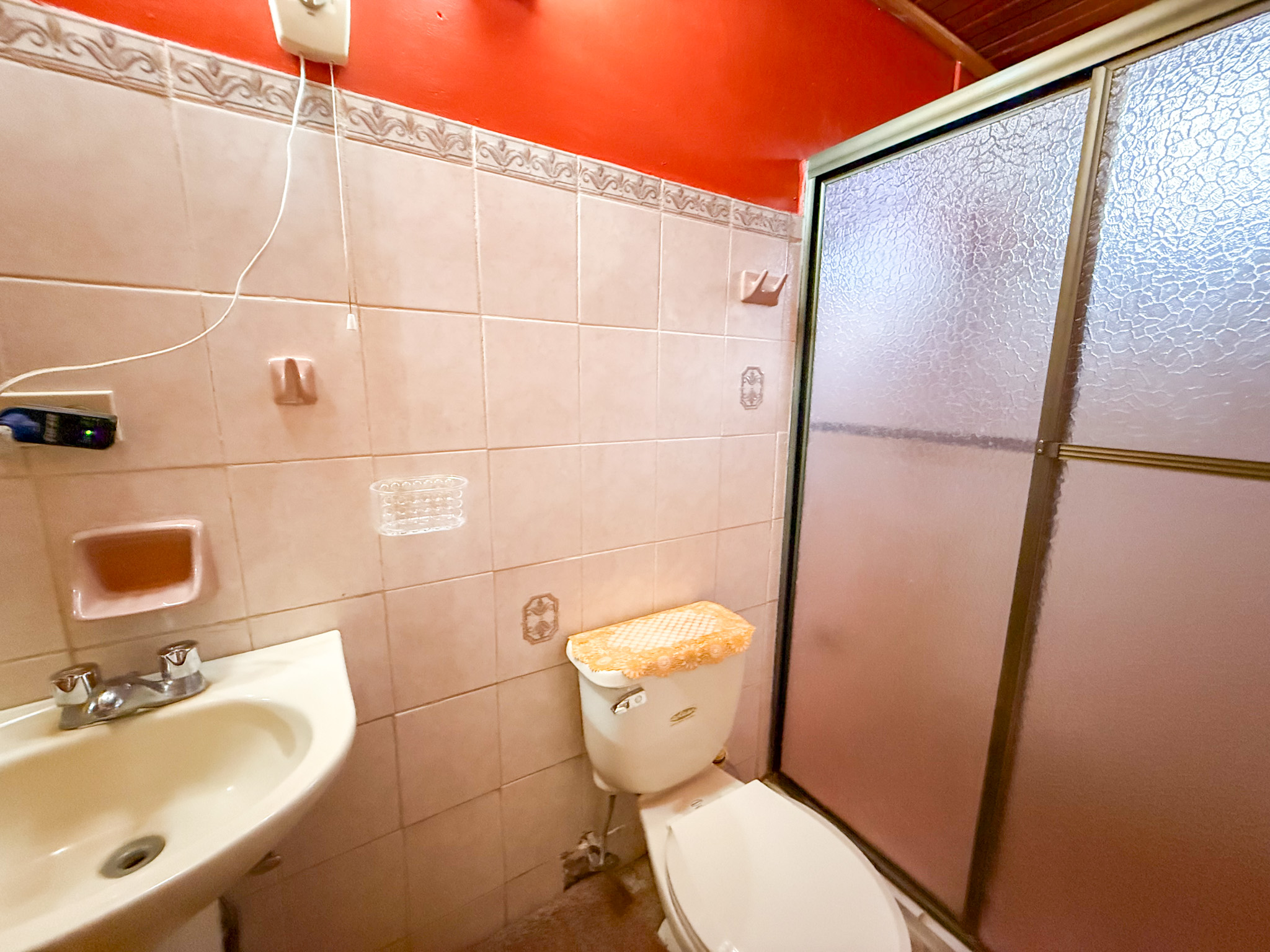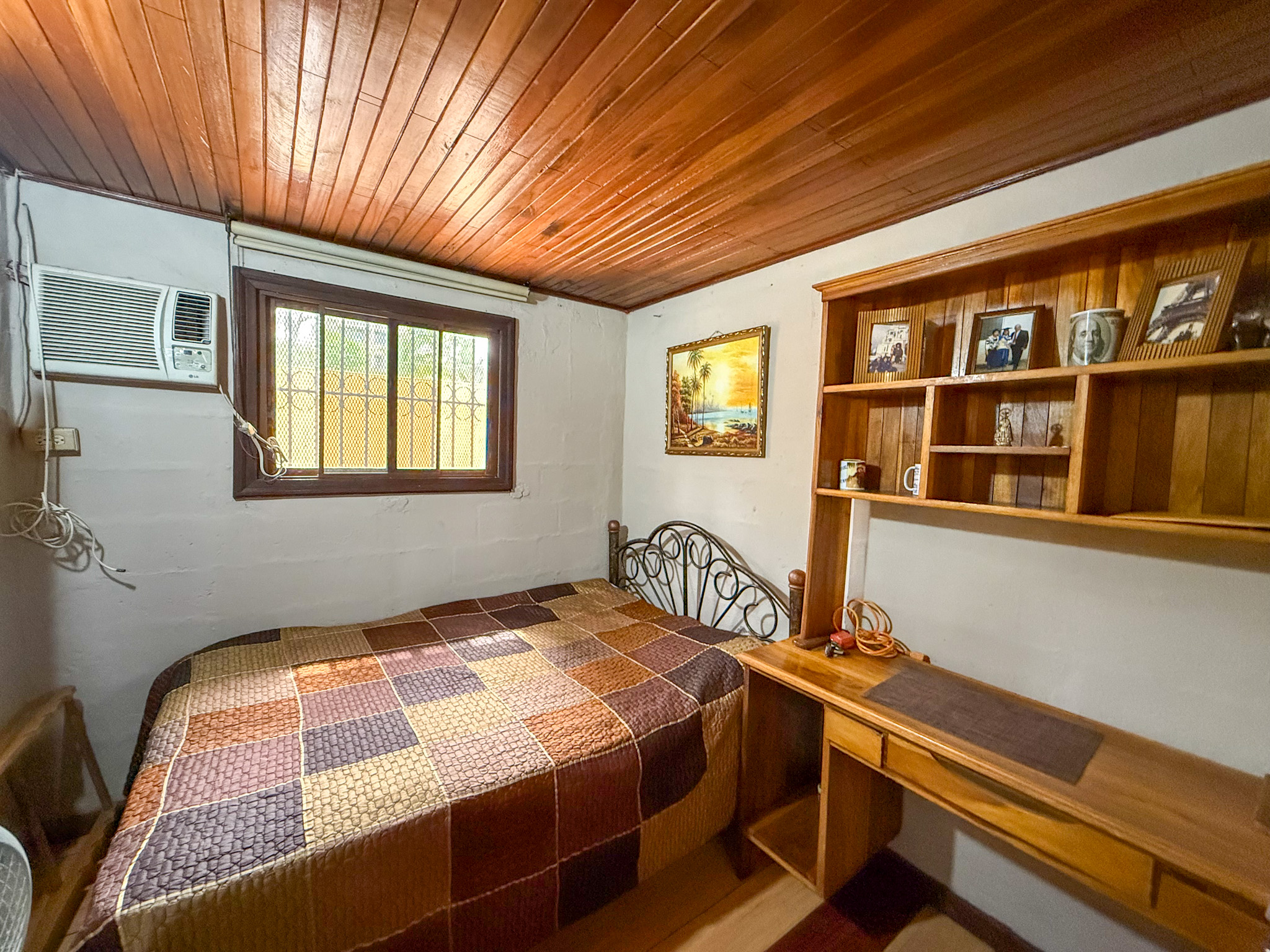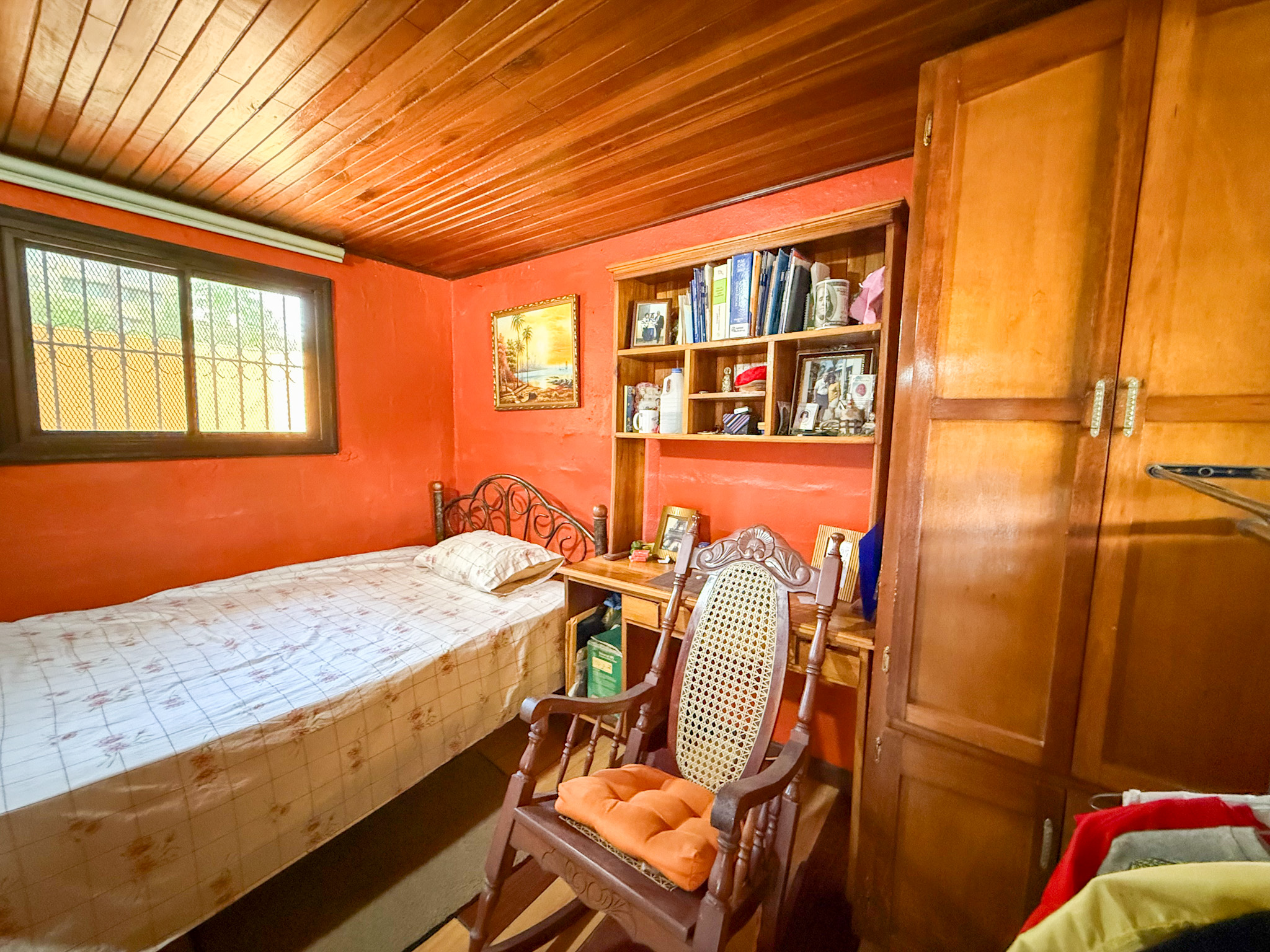 In addition to the two bedrooms in the main house, there is a separate guest room with a private bathroom and an adjacent storage area. On the left side of the property, you’ll find the laundry area, water reserve tank, and service area.
