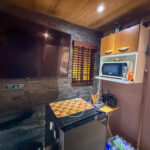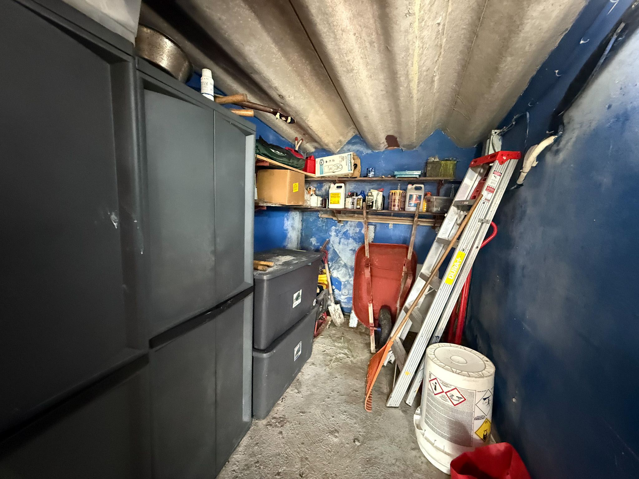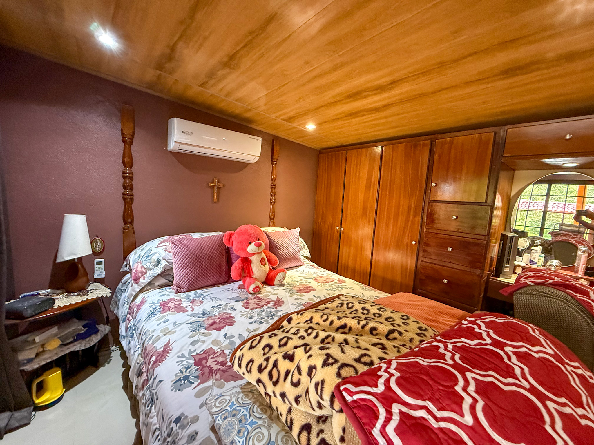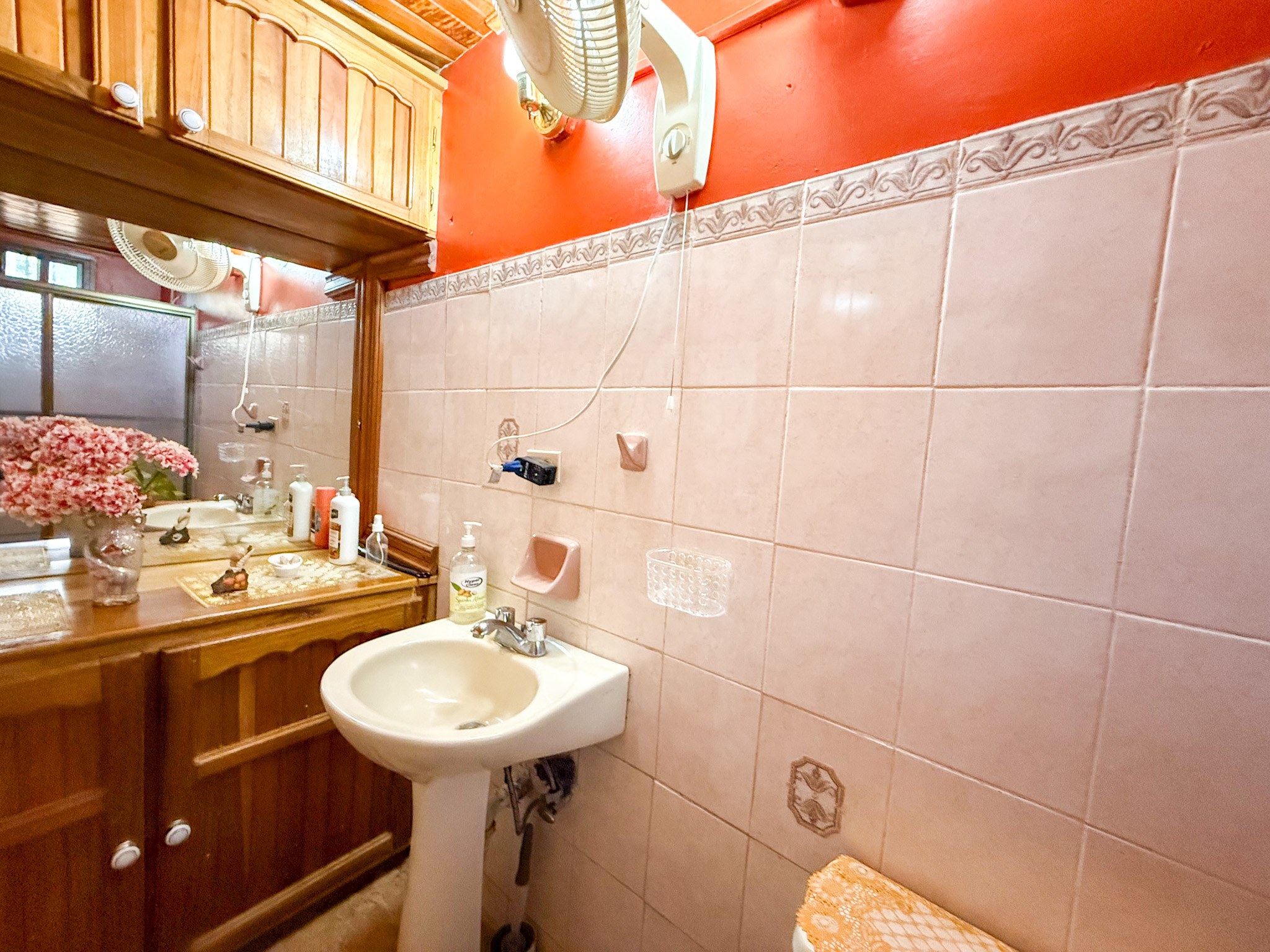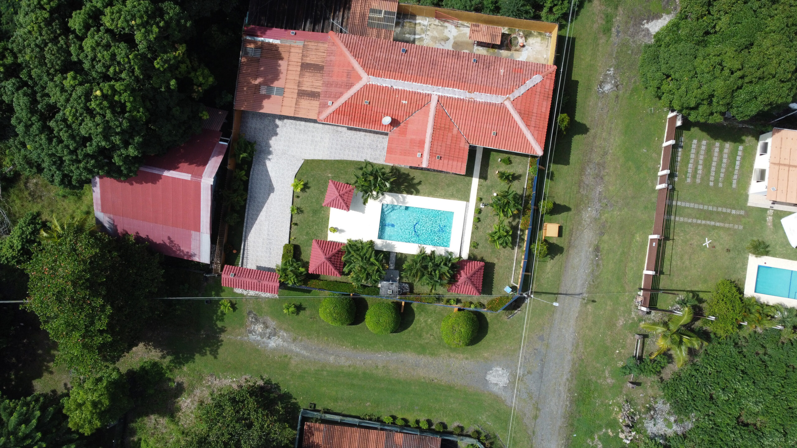 In addition to the two bedrooms in the main house, there is a separate guest room with a private bathroom and an adjacent storage area. On the left side of the property, you’ll find the laundry area, water reserve tank, and service area.
