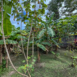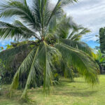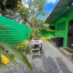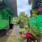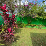 The landscaped garden features multiple fruit-producing plants including coconuts, three varieties of bananas, plantain, yucca, papaya, and Persian lime. Ideal for those who enjoy gardening, fresh fruit from their own yard, and outdoor living.