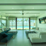 Main House Overview: This estate comprises a main house with four bedrooms and three bathrooms, exemplifying luxury and functionality with a single-story layout that enhances accessibility. The primary bedroom suite serves as a private retreat with sweeping ocean views and direct access to the pool. The en-suite bathroom boasts a spacious shower for indulgent relaxation. The open concept living area features soaring ceilings and expansive windows, seamlessly flowing into the gourmet kitchen equipped with top-of-the-line appliances and custom cabinetry. Adjacent to the kitchen, the dining area provides ample space for hosting memorable meals with loved ones.