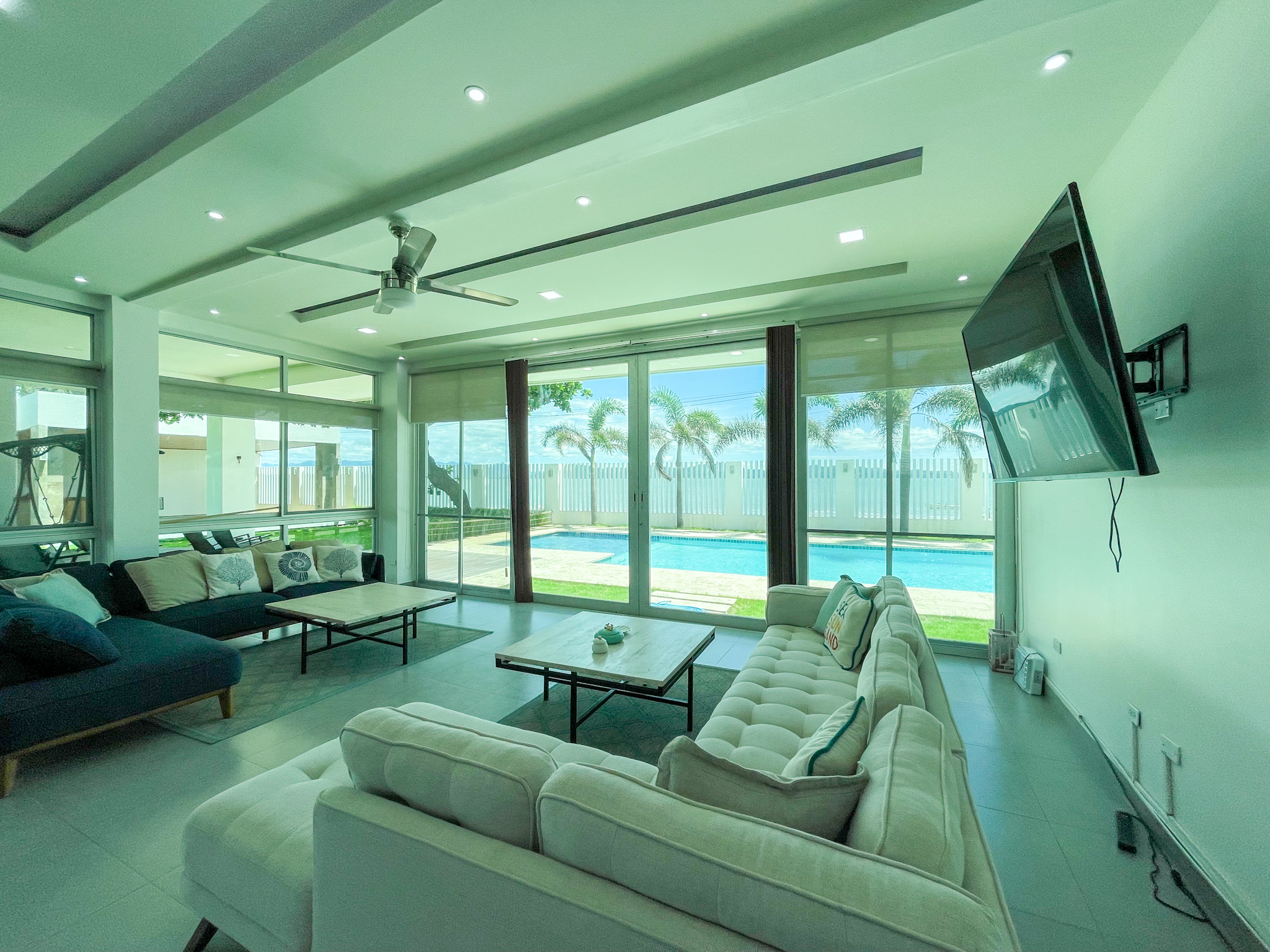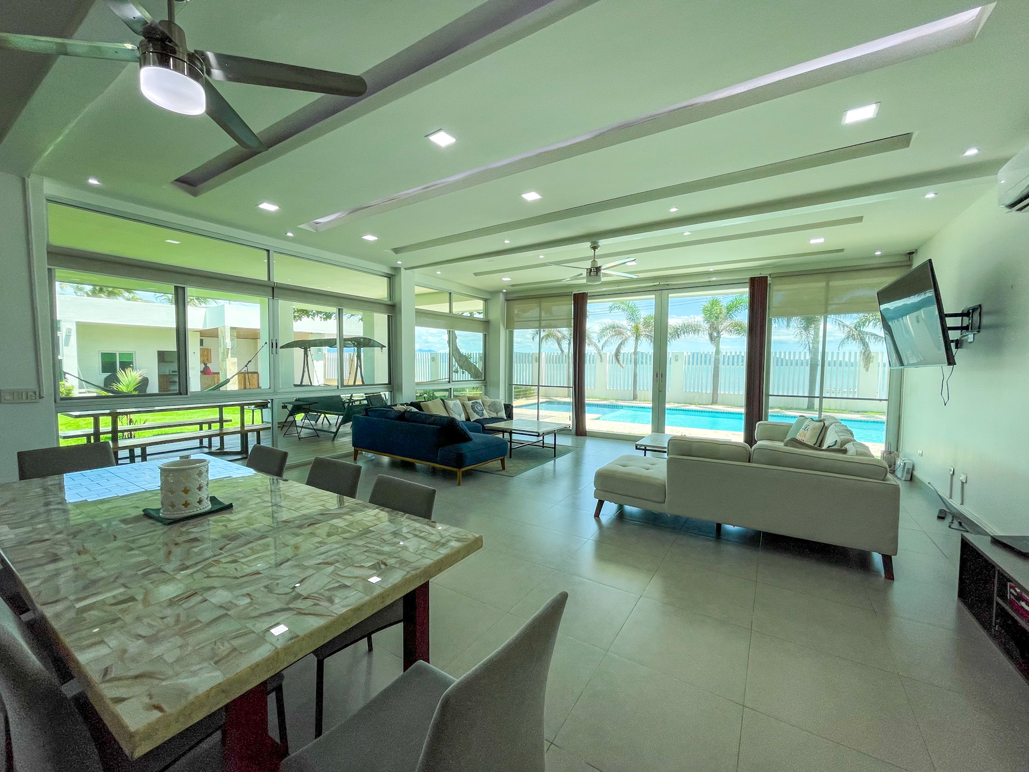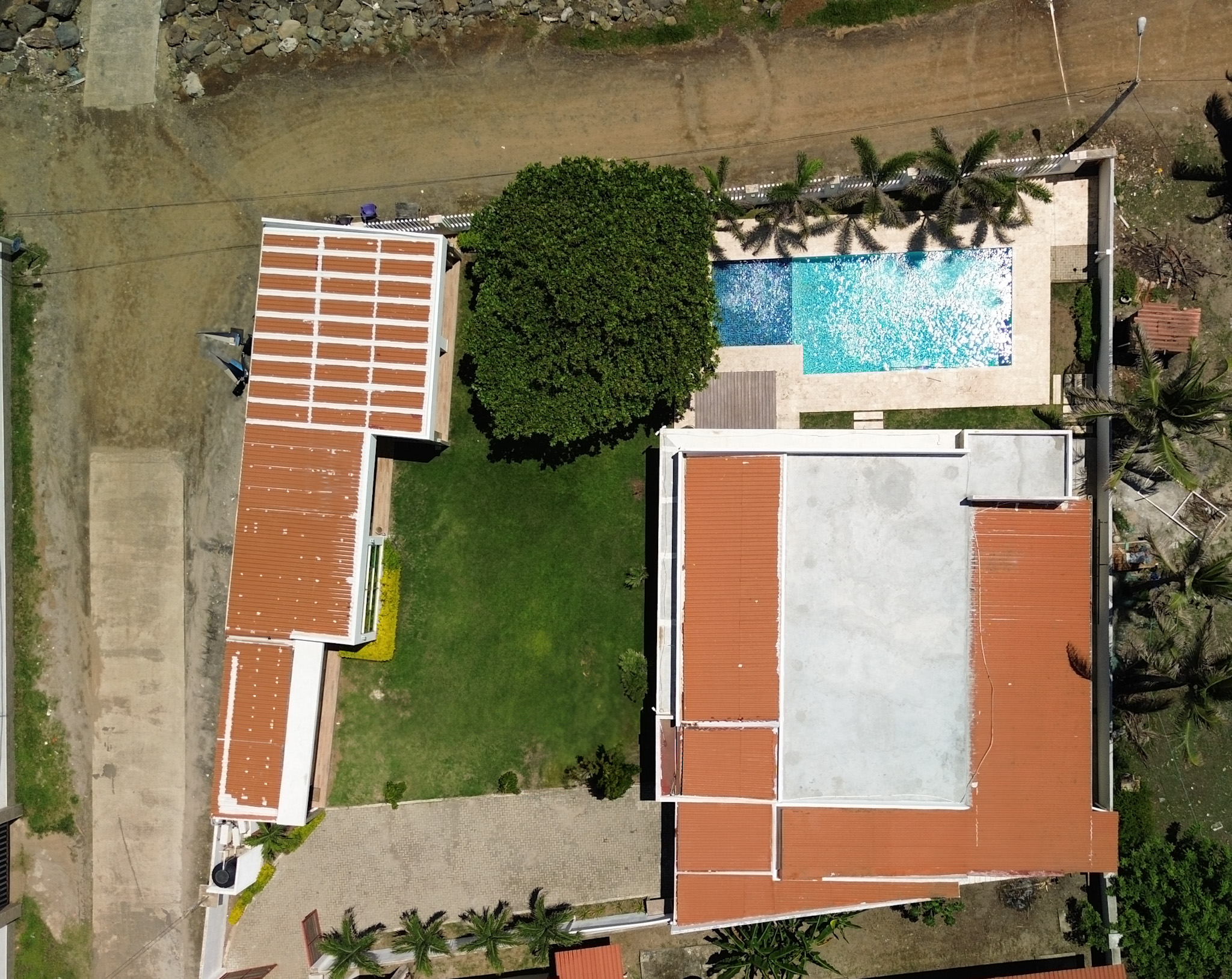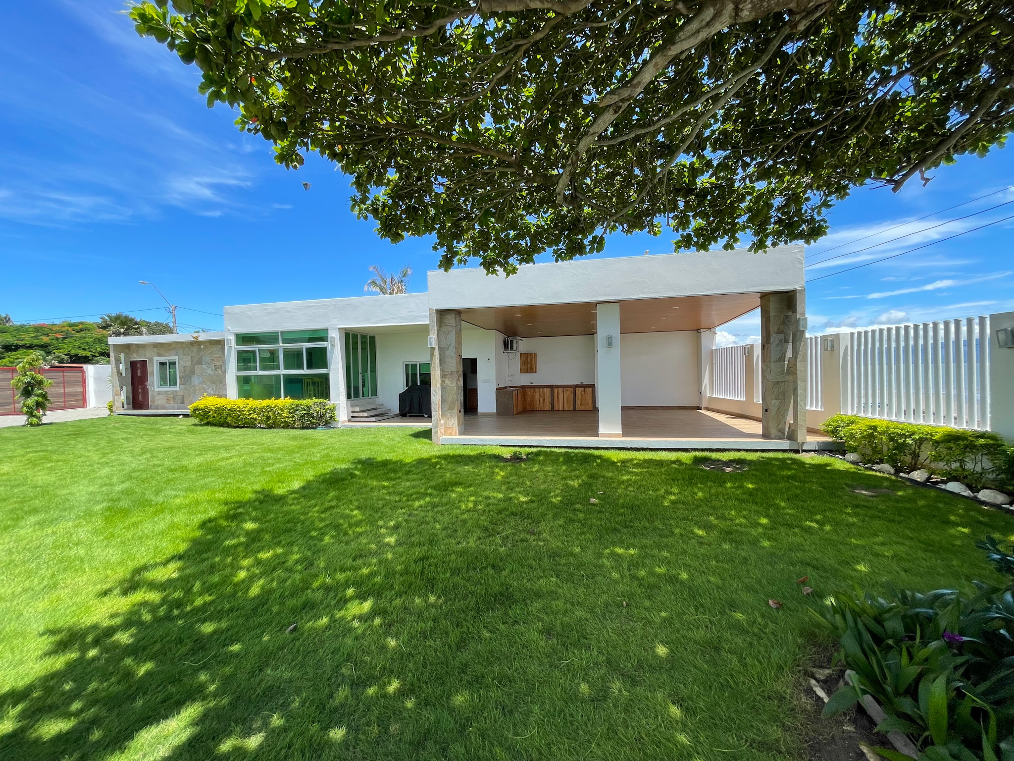Guest Accommodations: The guest house offers two elegantly appointed bedrooms, each featuring air conditioning and stylish furnishings, providing a comfortable retreat for visitors. A modern bathroom and cozy living room with access to a covered terrace complete the guest accommodations, ensuring a serene environment with stunning views.
