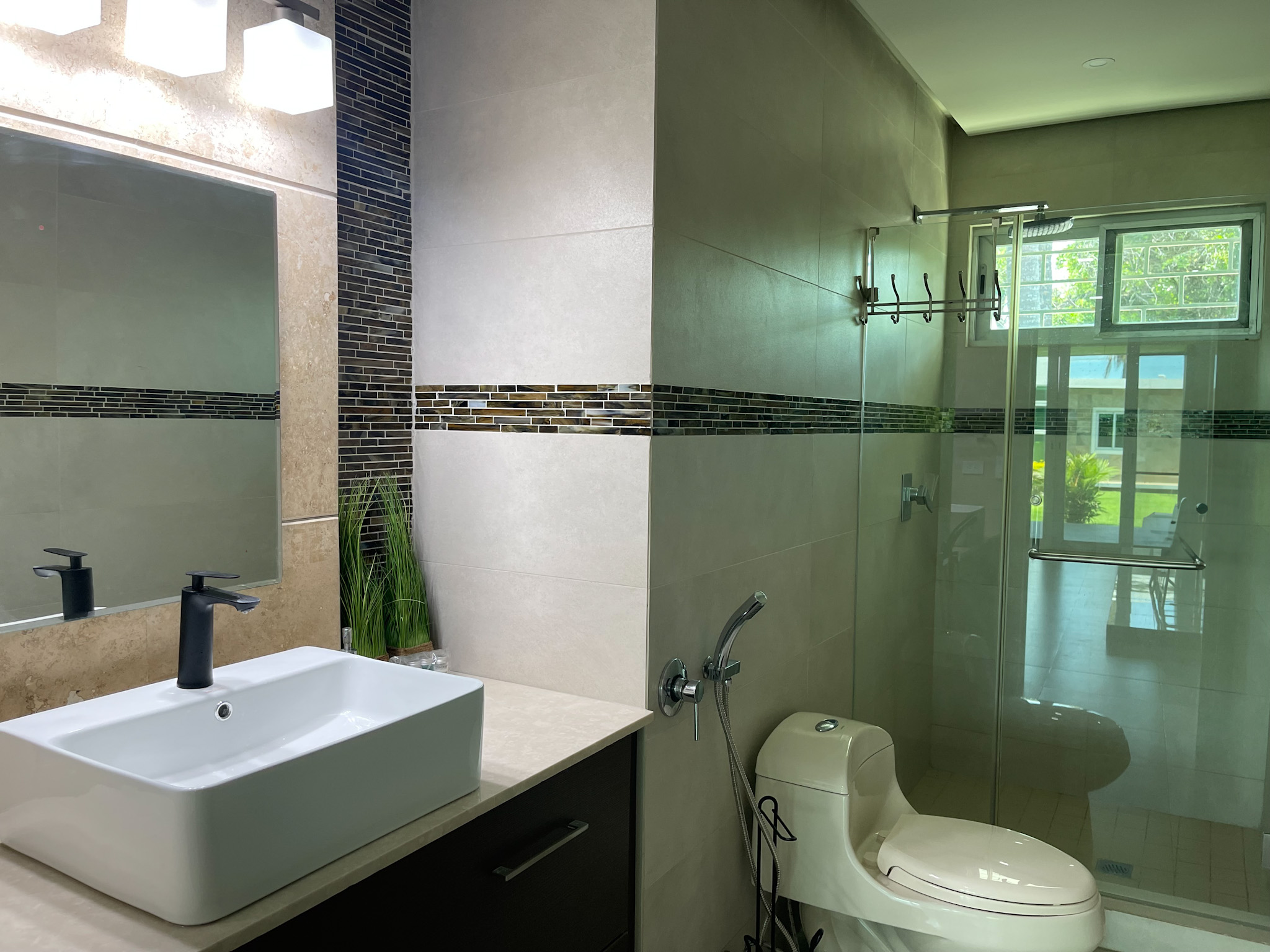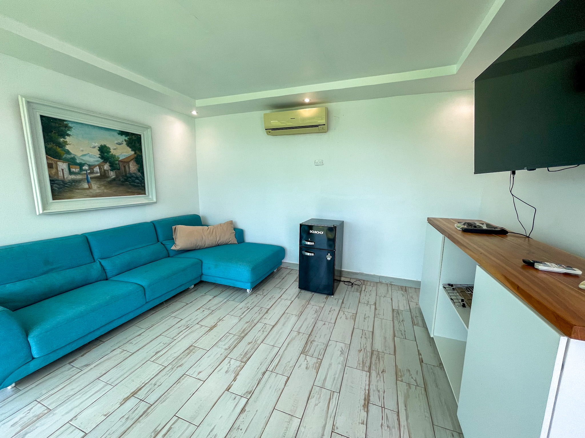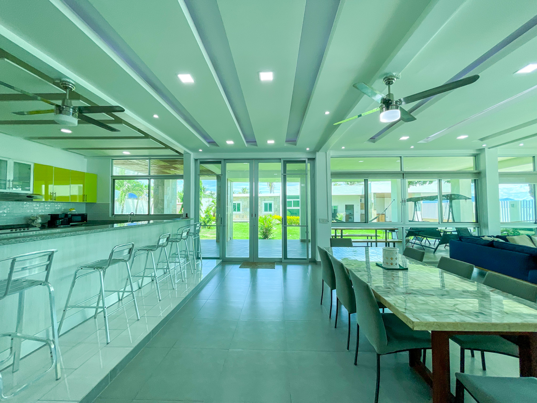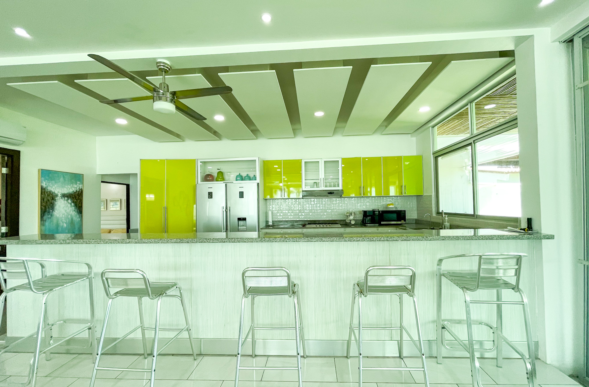 Guest Accommodations: The guest house offers two elegantly appointed bedrooms, each featuring air conditioning and stylish furnishings, providing a comfortable retreat for visitors. A modern bathroom and cozy living room with access to a covered terrace complete the guest accommodations, ensuring a serene environment with stunning views.