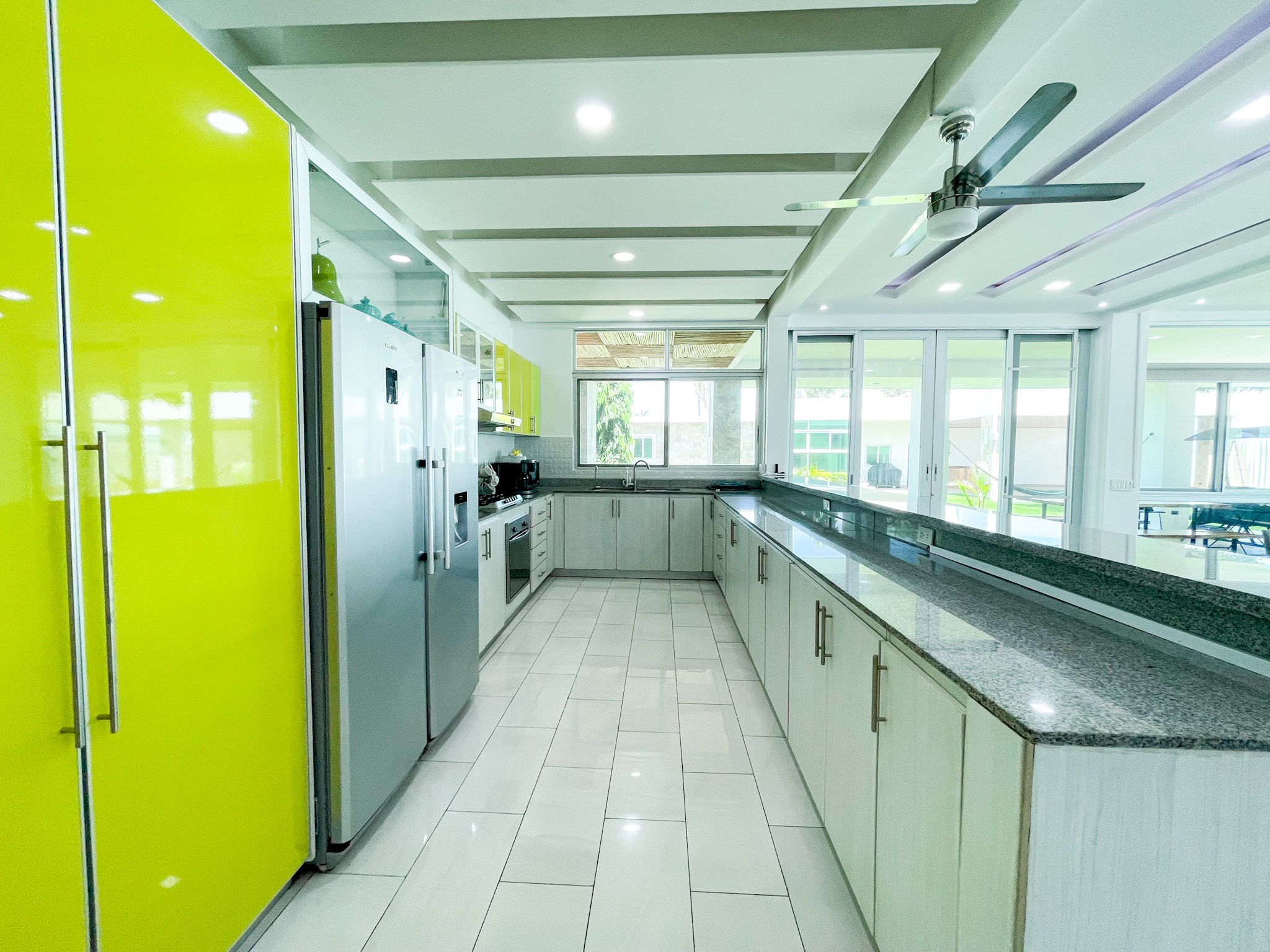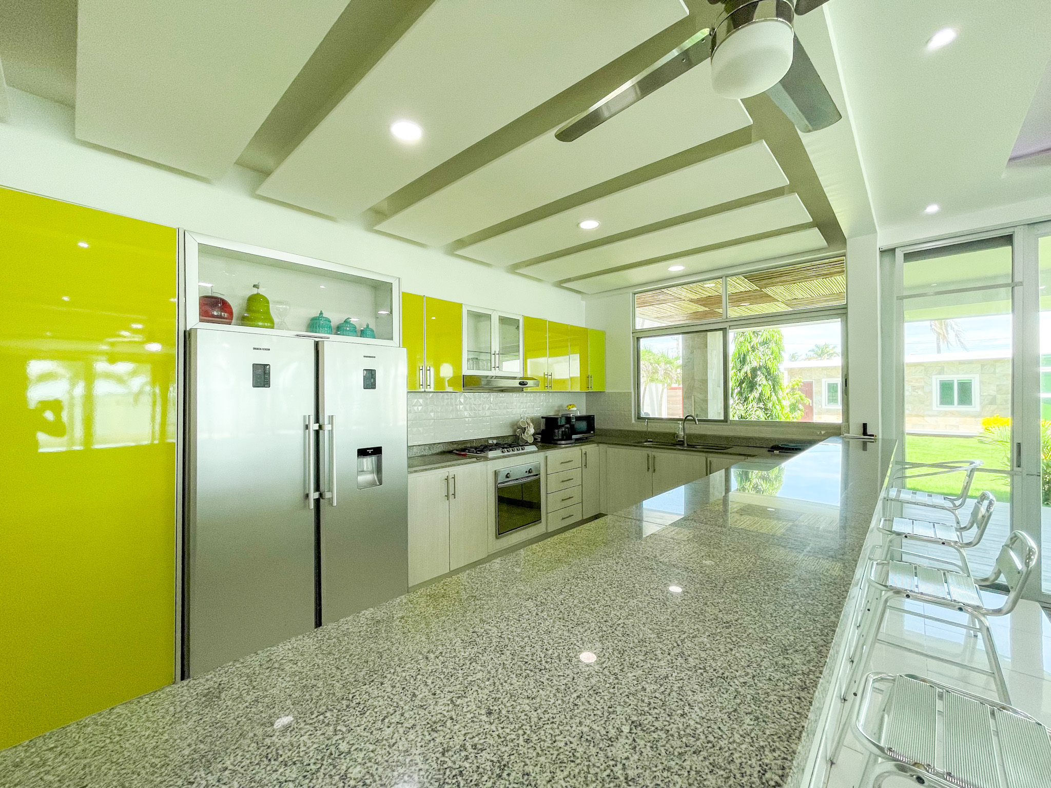 Main House Overview: This estate comprises a main house with four bedrooms and three bathrooms, exemplifying luxury and functionality with a single-story layout that enhances accessibility. The primary bedroom suite serves as a private retreat with sweeping ocean views and direct access to the pool. The en-suite bathroom boasts a spacious shower for indulgent relaxation. The open concept living area features soaring ceilings and expansive windows, seamlessly flowing into the gourmet kitchen equipped with top-of-the-line appliances and custom cabinetry. Adjacent to the kitchen, the dining area provides ample space for hosting memorable meals with loved ones.