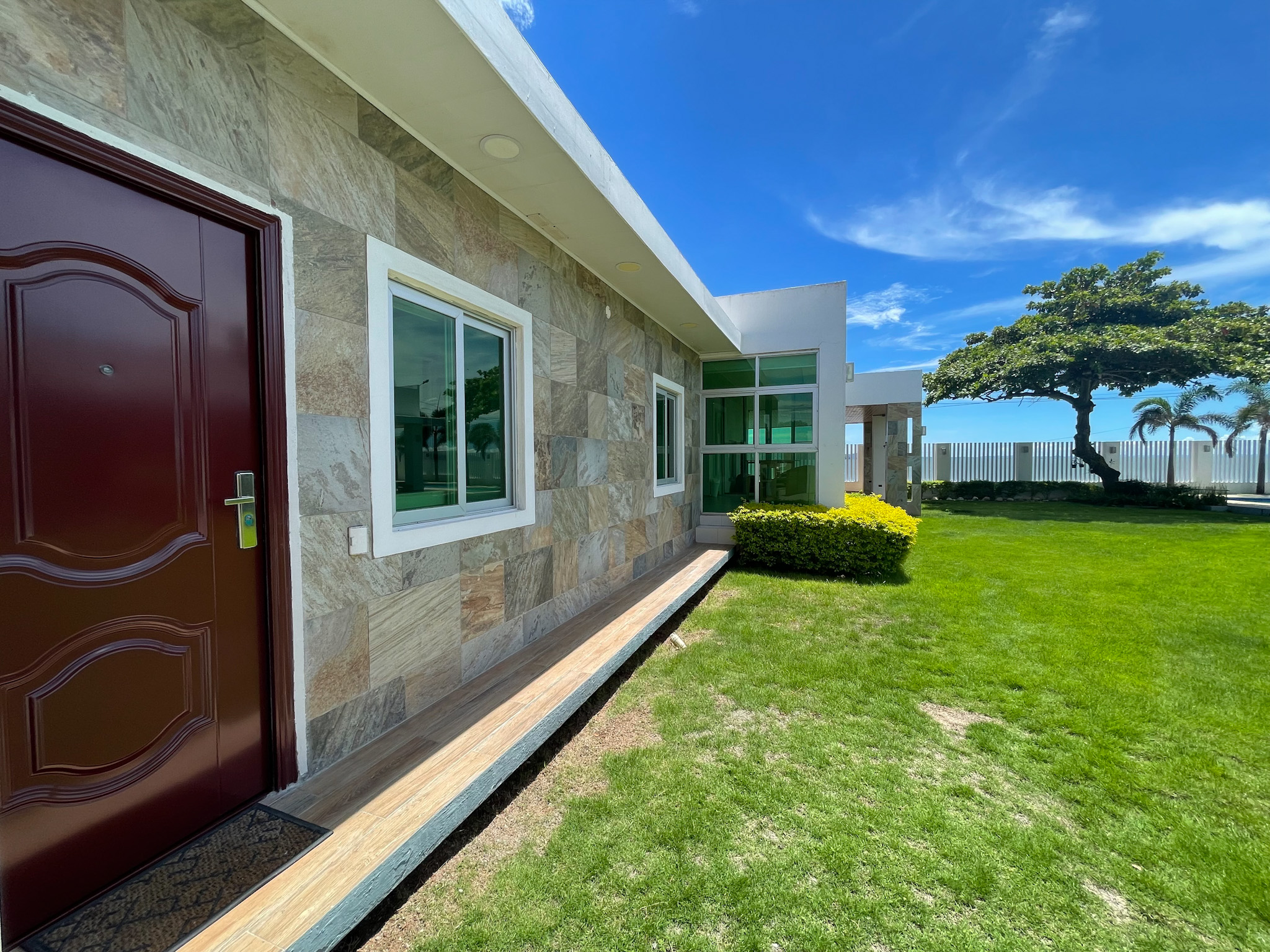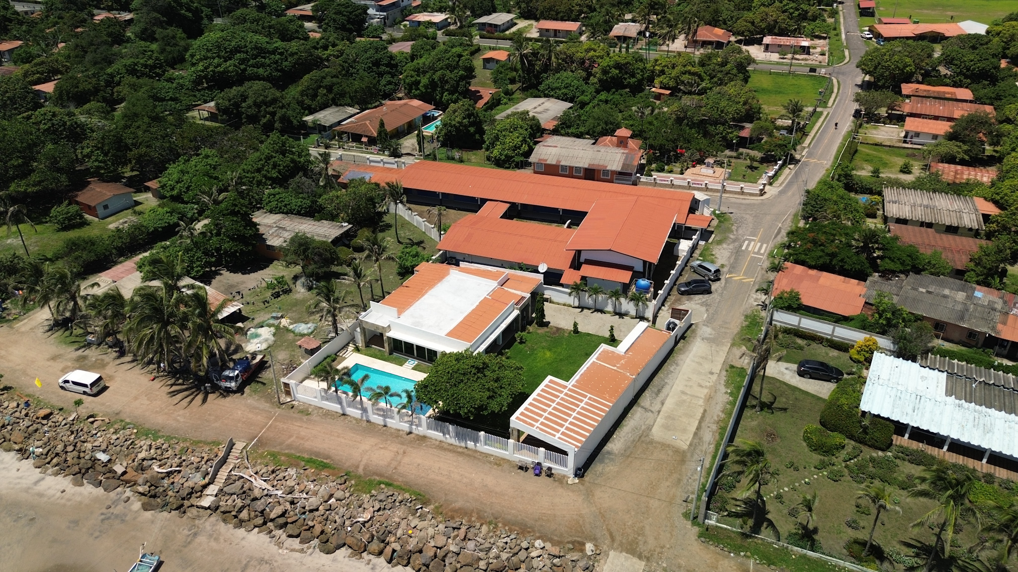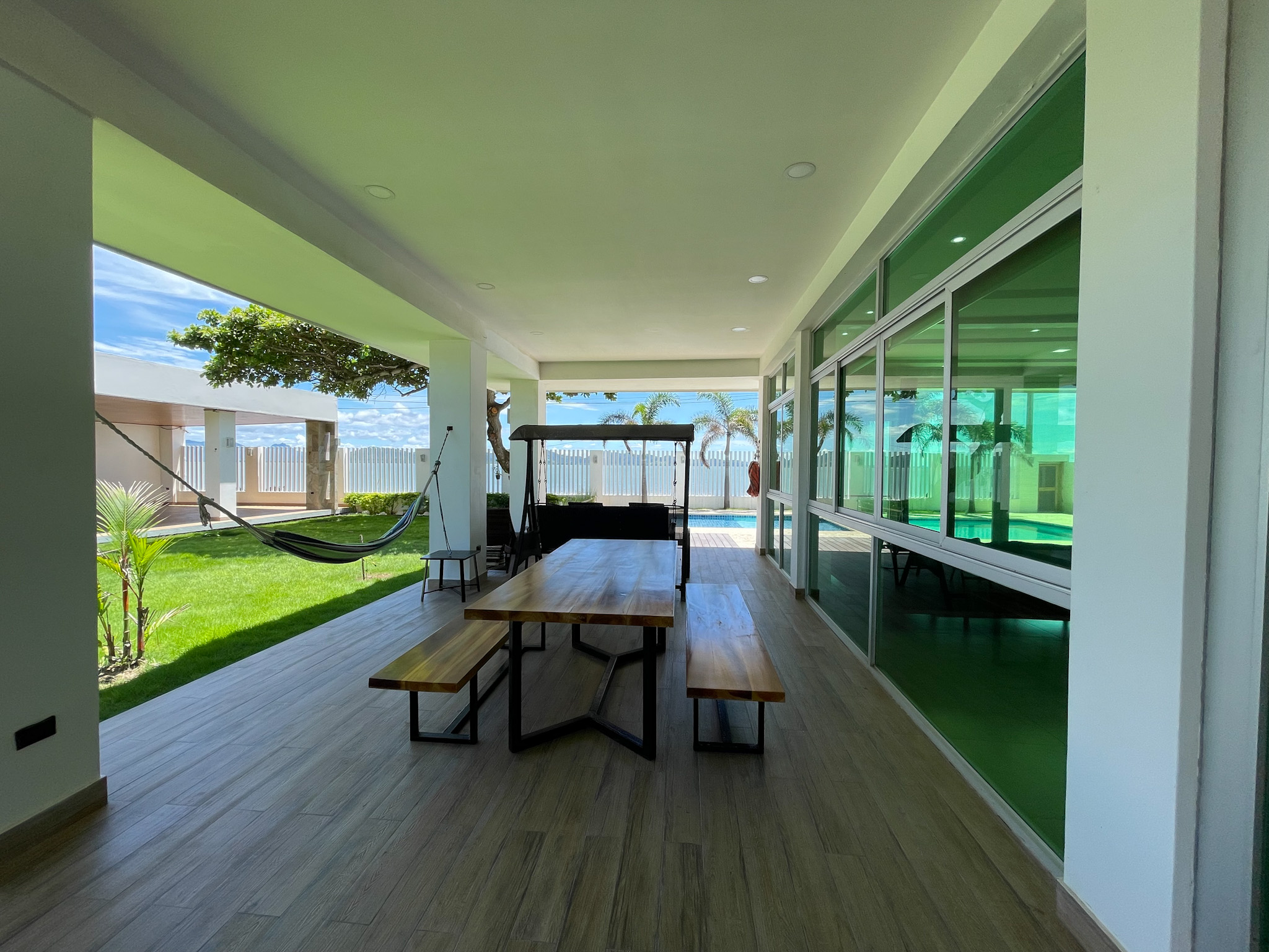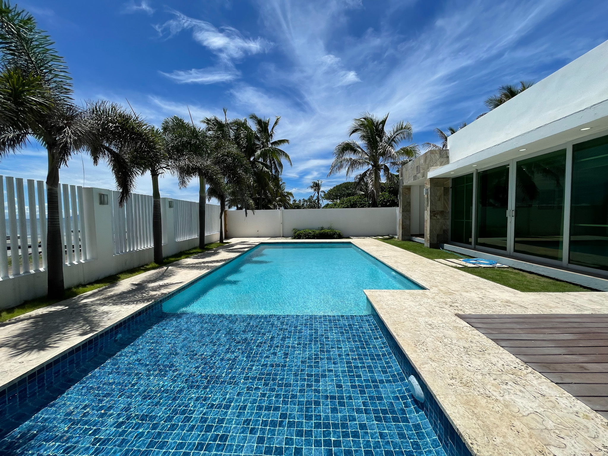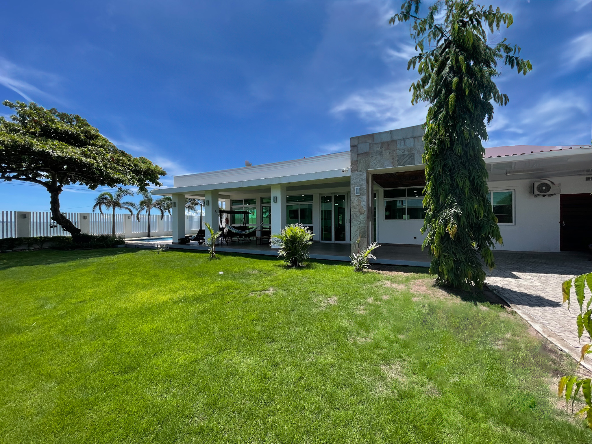 Nestled along the pristine shores of Punta Chame, Panama, this exquisite beachfront estate spans an expansive 0.28 acres (1,137 square meters) and offers a meticulously renovated main house and charming guest accommodations, totaling 6,458 square feet (600 square meters) of impeccably crafted living space.