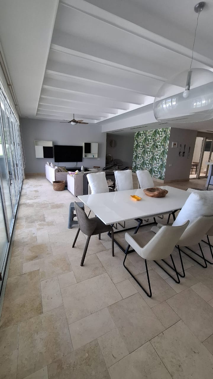 Ground Floor: Covered garage, storage rooms, maid’s room and bathroom, living room, dining room, kitchen, covered laundry area, covered terrace, barbecue area, half bathroom, swimming pool, and pump room.
