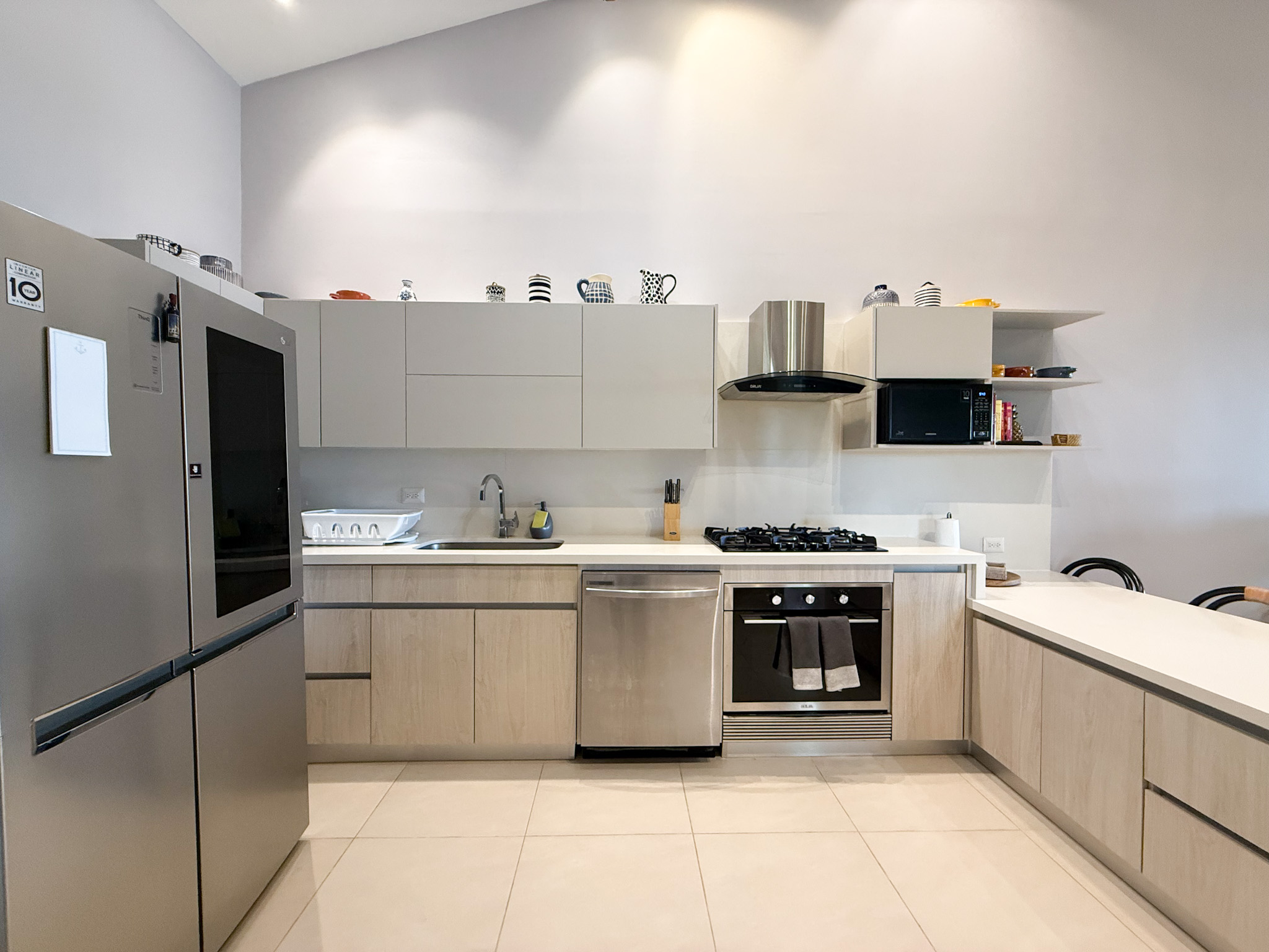 The home is offered fully furnished, including all furniture and appliances, making it a true turnkey property. Additional features include a staff bedroom with a private bathroom and well-considered details throughout that reflect a modern and vibrant style.