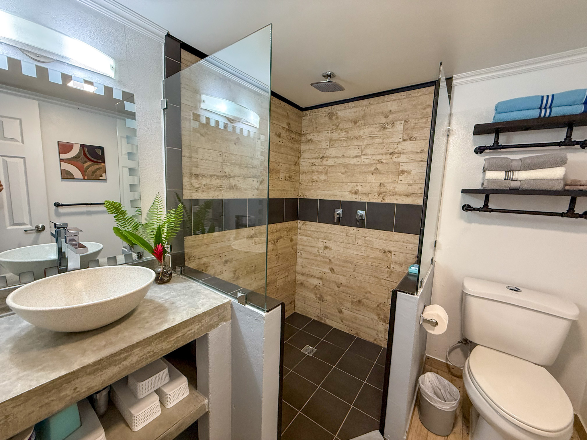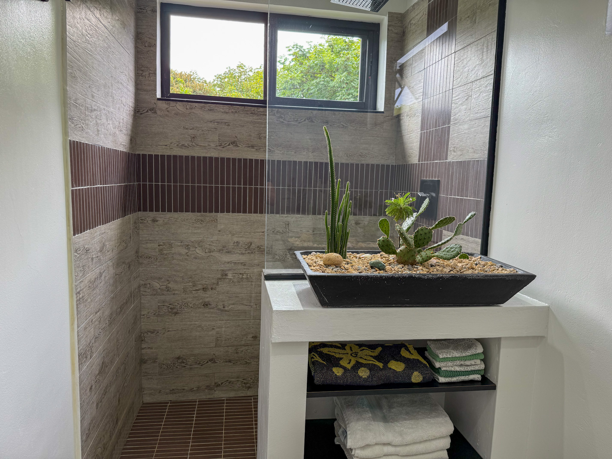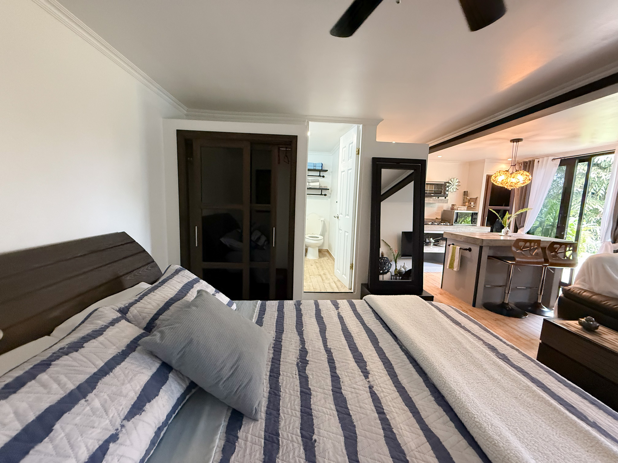 On the ground floor, the property includes a fully independent, furnished 527 square feet (49- square meters) apartment with a private entrance. This unit features a kitchen, a living and sleeping area, and 1 bedroom. It is currently a reliable income-generating rental that stays consistently booked. Adjacent to this apartment is an additional enclosed room that can be converted into a second apartment, offering even more rental potential.