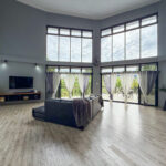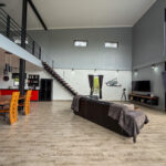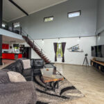 The main residence features an enclosed construction area of 1,764 Square feet (163.87 square meters) across two levels. As you enter the main floor, you are greeted by an open-concept layout with high ceilings and floor-to-ceiling windows that fill the home with natural light and frame the stunning mountain views. This level includes an elegant open kitchen, a spacious living area, 1 bedroom, and 1 bathroom. Large windows connect seamlessly with the outdoors and lead to a generous terrace, ideal for entertaining or quiet relaxation.
