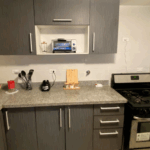 • Kitchen equipped with stove, refrigerator, dishwasher, washer, and dryer
