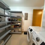 A full service bathroom located in the laundry area, ideal for staff or extra convenience